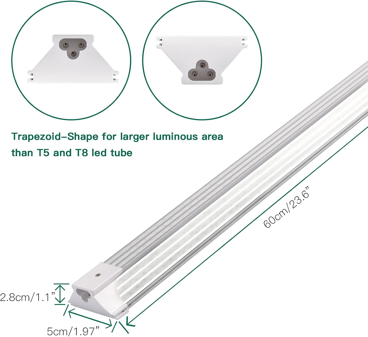 - [Scientific Design and Super Bright] - SZHLUX LED Utility shop light with an incredible minimum of 145lm/watt (Each light has 4350lm output). Trapezoid-Shape for larger luminous area than T5 and T8 led plant light, works extremely well in garage, basement and cabinet, etc.