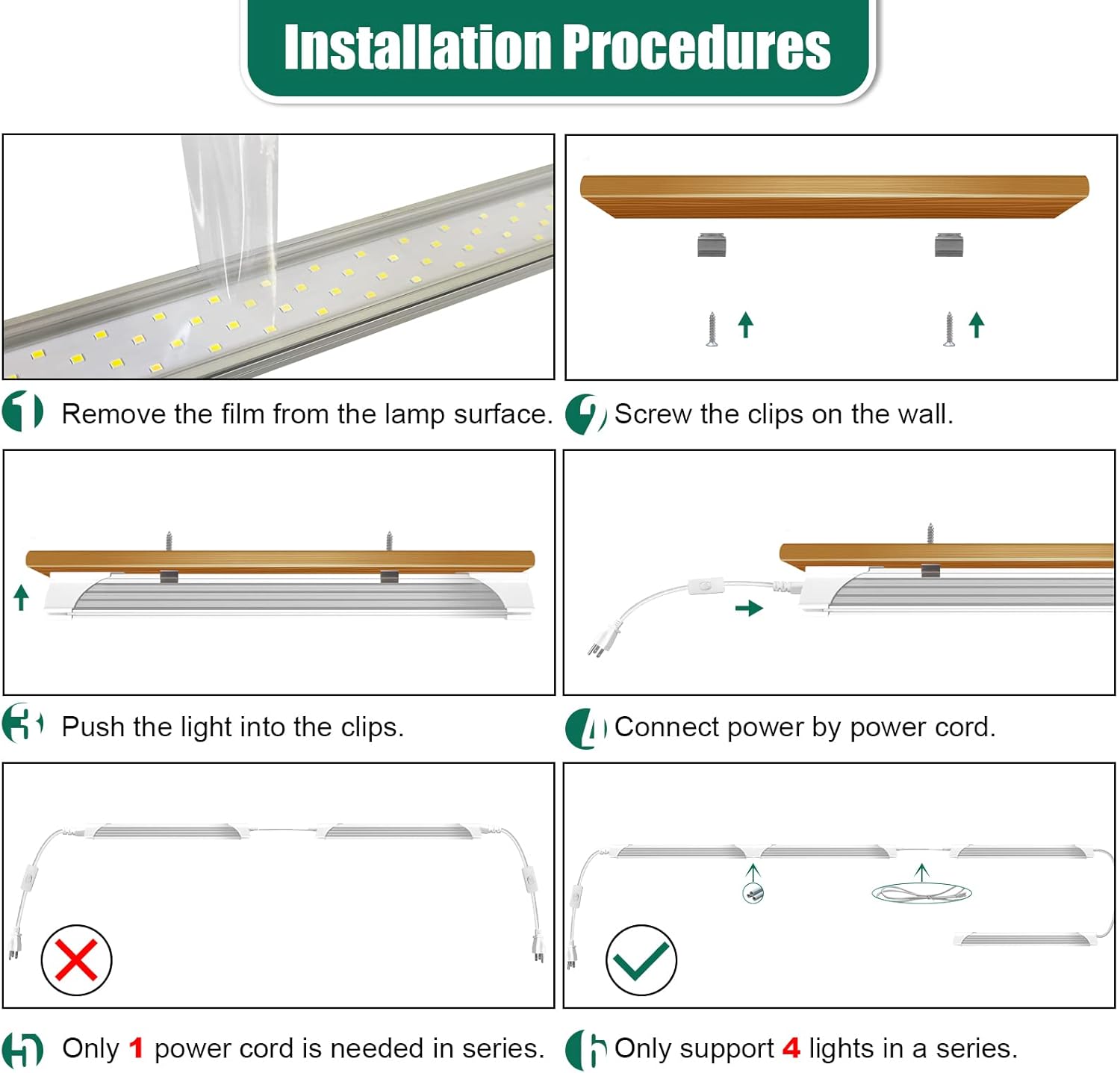 - [Linkable and Easy Installation] - Plug & Play. Come with 59" power cord with on/off switch. You could link up to 4 lights in a series by 47 inches connecting cords or small connectors.