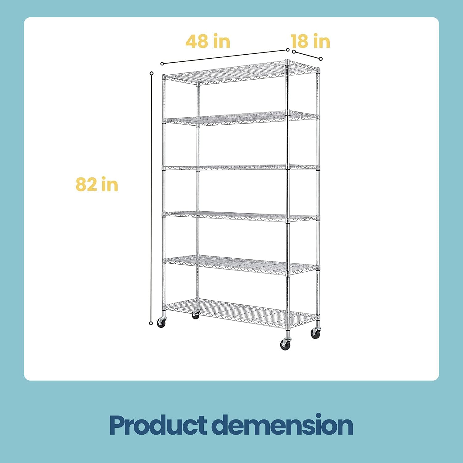 48" D×18" W×82" H Wire Shelving Unit Metal Shelf with 6 Tier Casters Adjustable Layer Rack Strong Steel for Commercial Restaurant Garage Pantry Kitchen Garage,Chrome