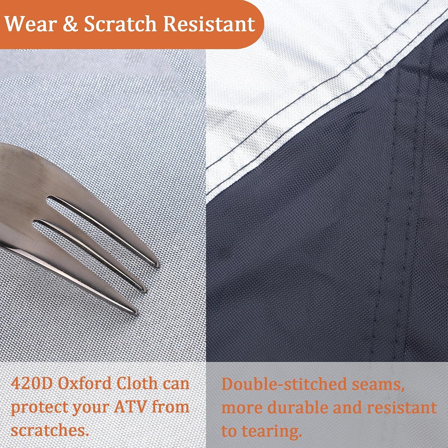 - DURABLE WATERPROOF MATERIAL-Softclub ATV cover is made of 420D Oxford heavy-duty waterproof fabric, which has stronger windproof, waterproof, scratch resistance and durability than other 190D 210D 300D Oxford material.