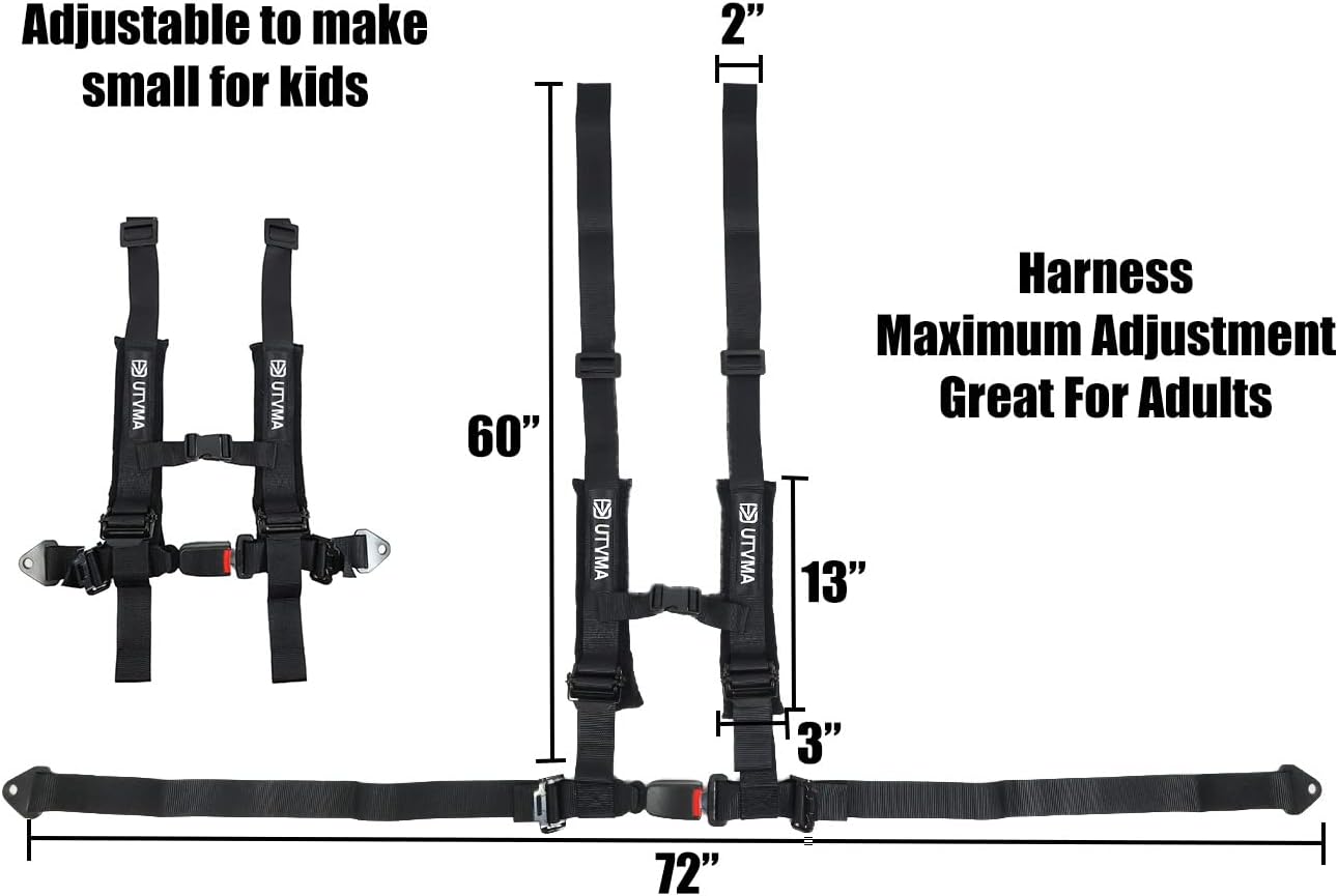 - INCLUDES: ALL Mounting hardware and brackets, UTVMA Bump Seat, UTVMA 4 Point harness with auto buckle