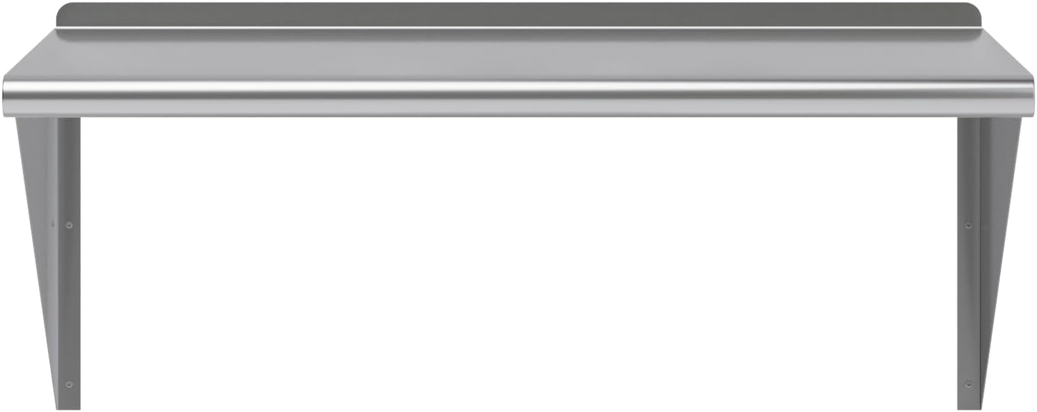 - 24 in. x 36 in. Stainless Steel Wall Shelf with 15 in. High Mounting Brackets. This heavy-duty multifunctional stainless wall shelf is made with 18 gauge stainless steel and can hold up to 385 Lbs of weight. The design features a 1 in. backsplash and bullnose edge. It's made with durable welded corners and support brackets.