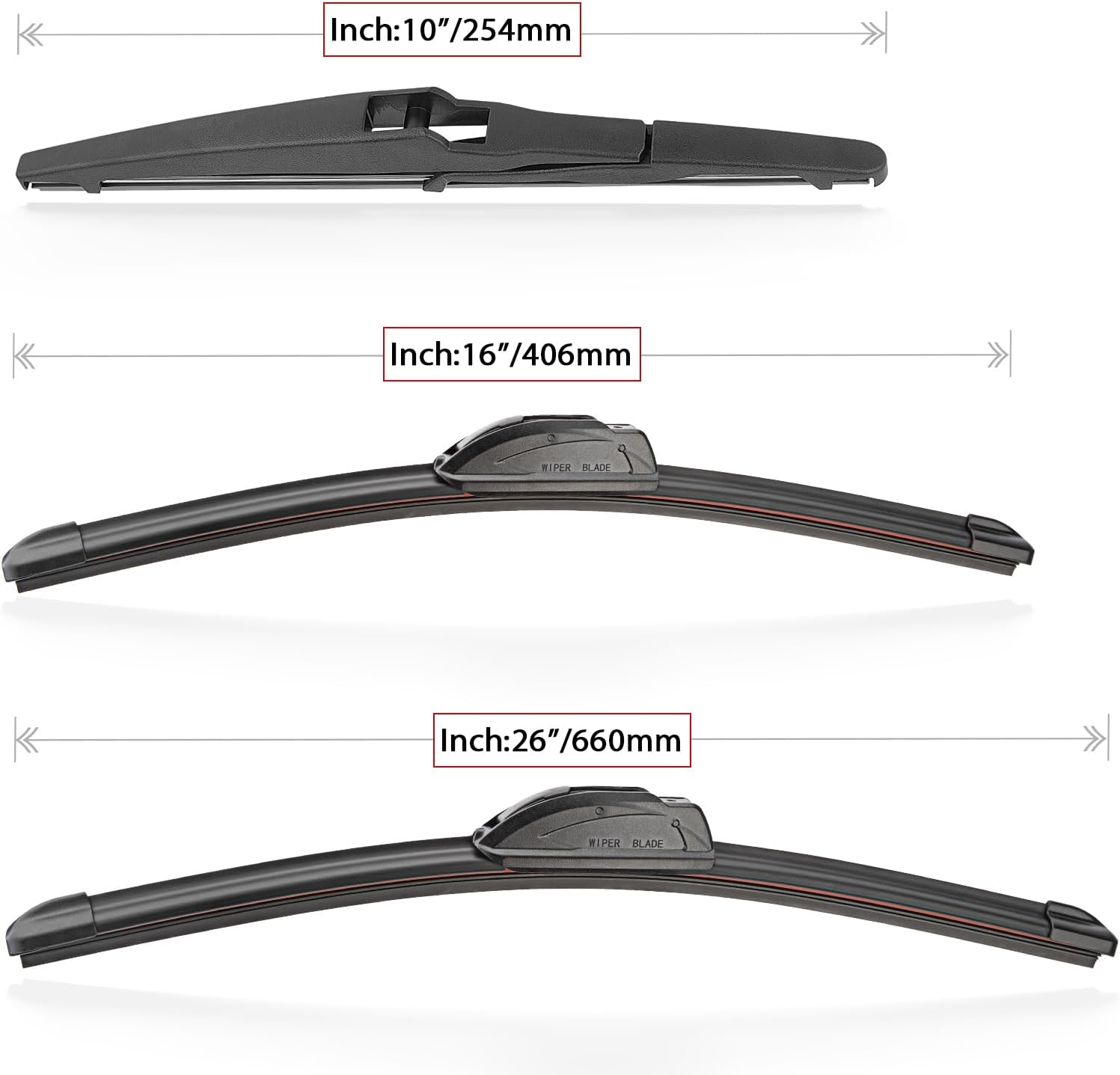 - {FITMENT}: Replacement for 2013 2014 2015 2016 2017 2018 Toyota RAV4 26inch + 16inch front with 10inch back windshield wiper blades.