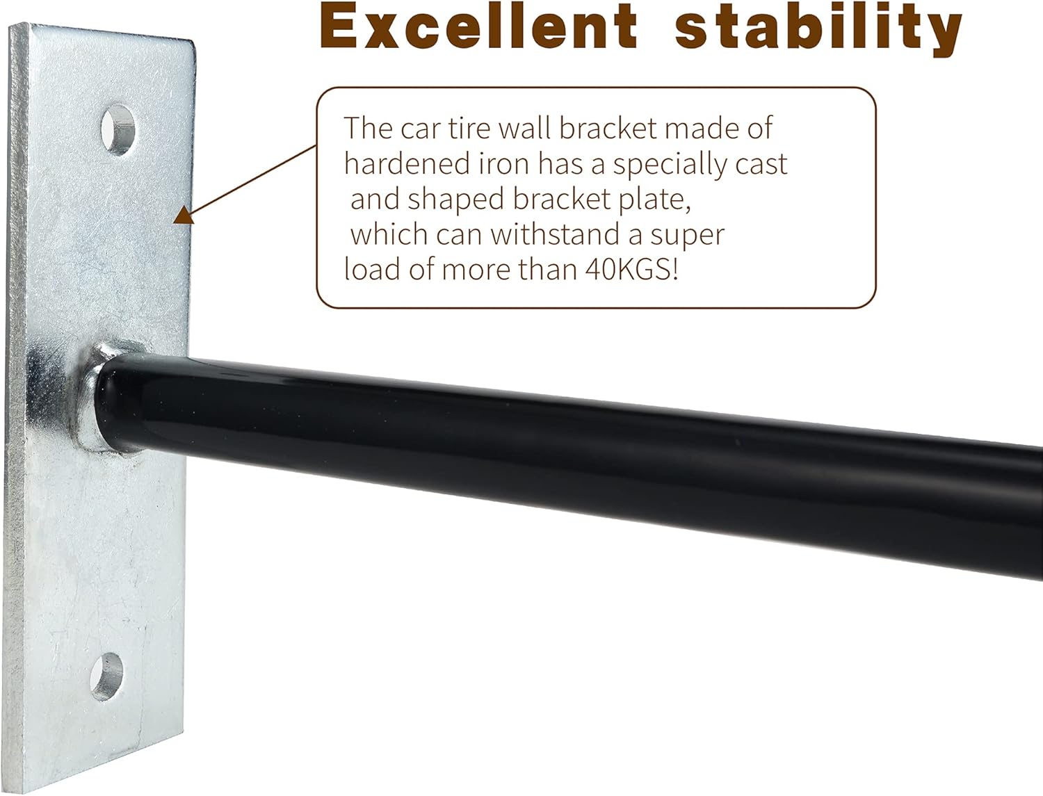 - Wide range of applications:This hooks is provided to you in an ultra-stable, long and thin shape. Therefore, the tire retainer can be used without compromise and can withstand a weight of up to 50 kg. On our wall mount, your wheels will look shiny!