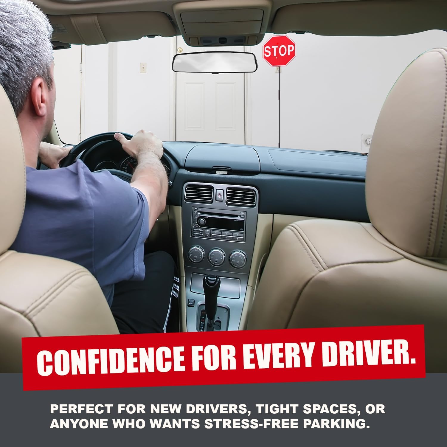 Securityman Garage Parking Aid with LED Stop Sign [Upgraded Base] – Large 7" Sign, Bright Red LEDs, Adjustable Height – Garage Car Stopper & Parking Assist Indicator