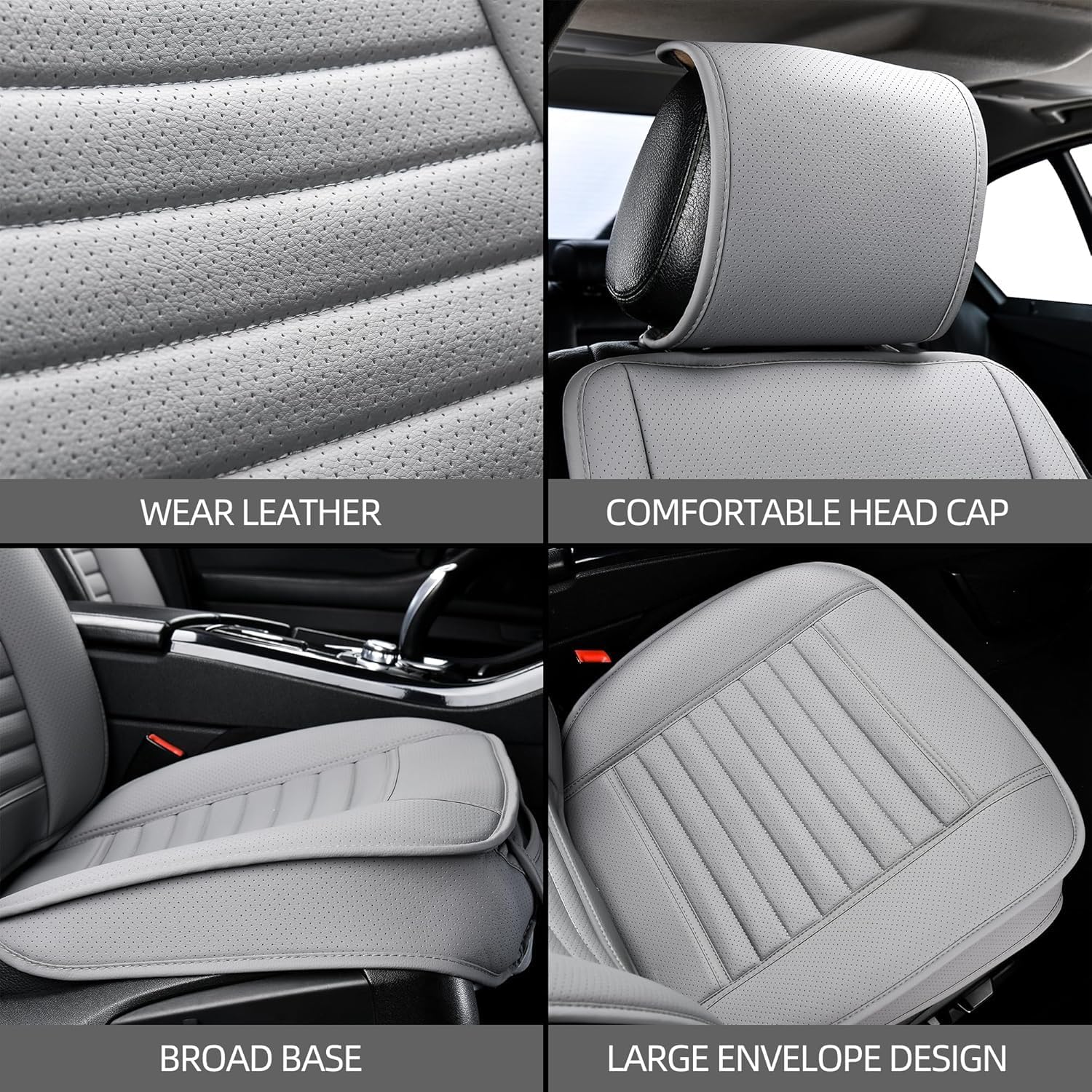 - 🚗Premium PU Leather Material-The auto seat cover is made of high-grade soft PU leather, waterproof, easy to scrub, durable and good breathability. Built-in a layer of highly flexible sponge, four seasons applicable. Maintain the comfort of the buttocks, helps relieve pressure on hips and thighs from driving for a long time. At the bottom of covers is rubber sole which prevent falling off from your car driver seat.