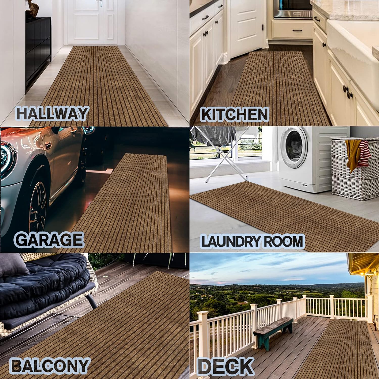 Custom Size Backed Non-Slip Area Rugs Runner, Easy Clean, Waterproof Runner Rugs for Hallway Entryway, Kitchen, Laundry, 2FT x 29FT, Brown Stripe