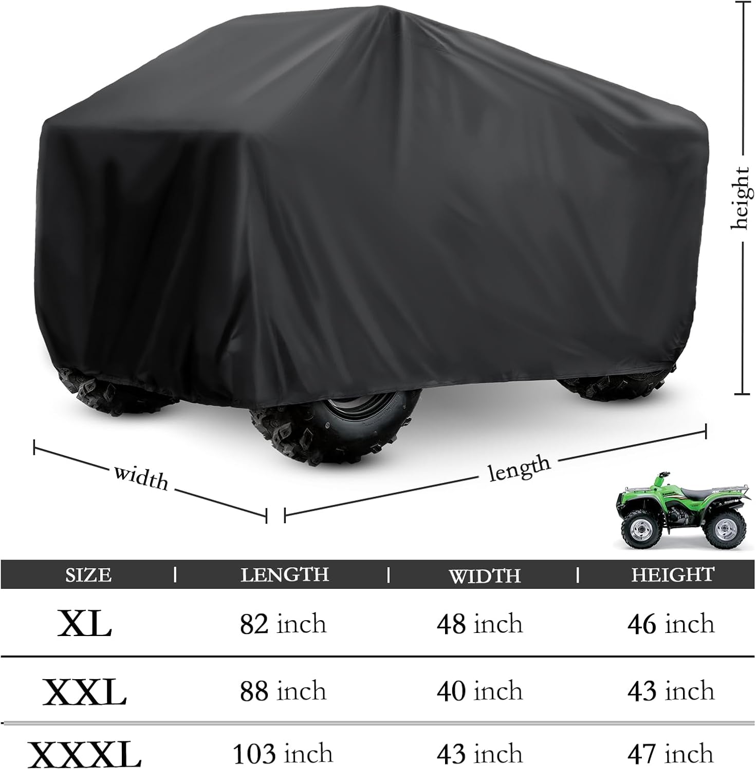 XYZCTEM Waterproof ATV Cover, Heavy Duty Black Protects 4 Wheeler from Snow Rain or Sun (Black, 88 inch)