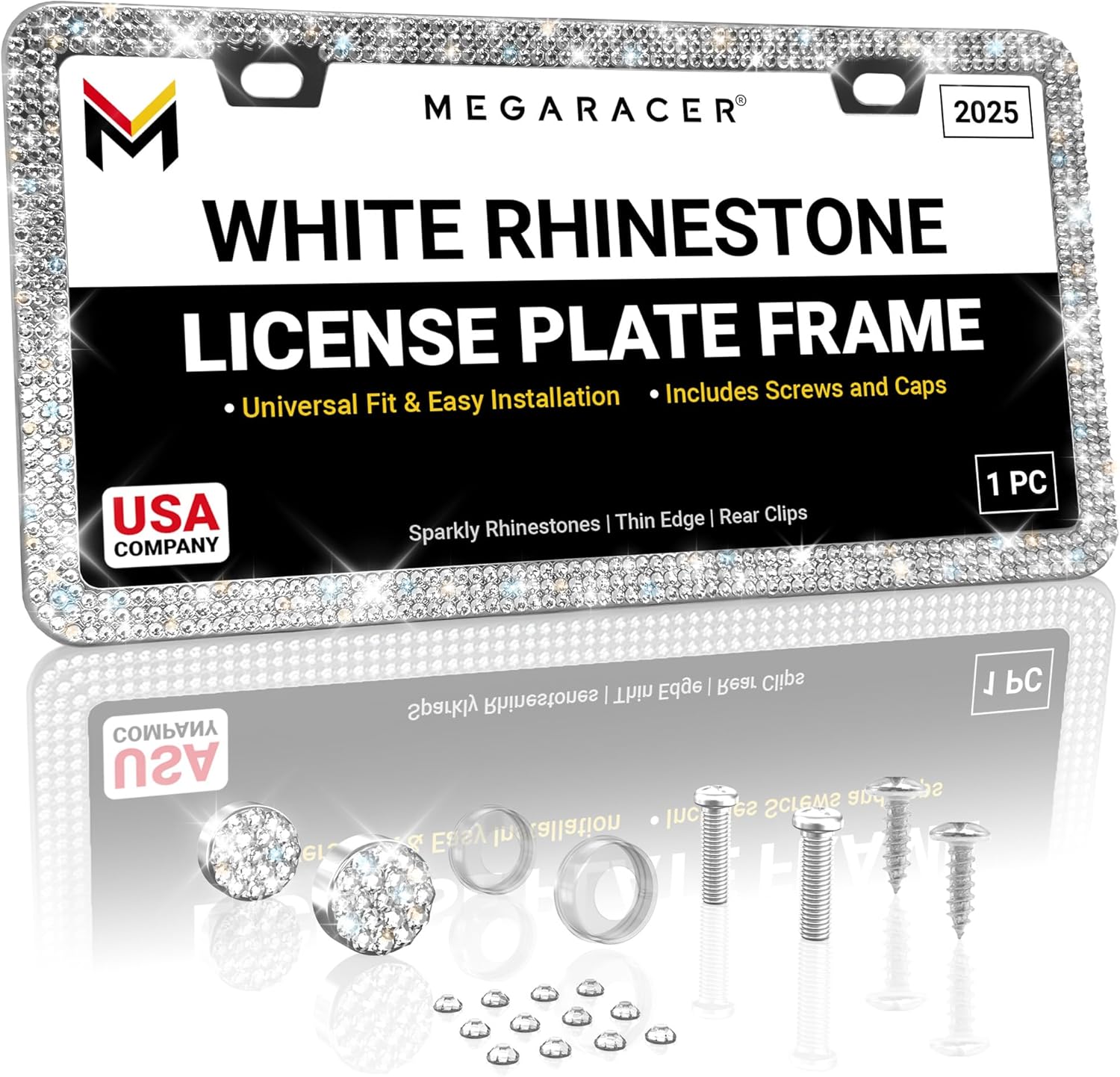 - Glitter Bling Rhinestone License Plate Frame for Women: Add a girly, glittery touch to your ride with this stunning 1-pack that’s made to shine.