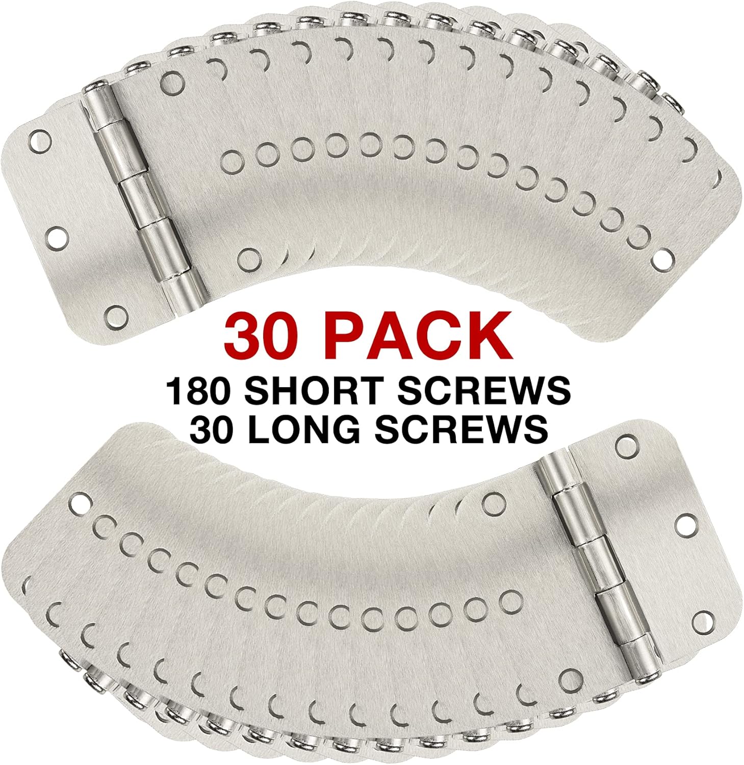 - Nickel door hinges 3.5" rounded corners with 6 holes for front door, cabinet, wooden box. Plain bearing hinges is including 180 free screws for quick and easy installation. It can be rotated 270 degrees.