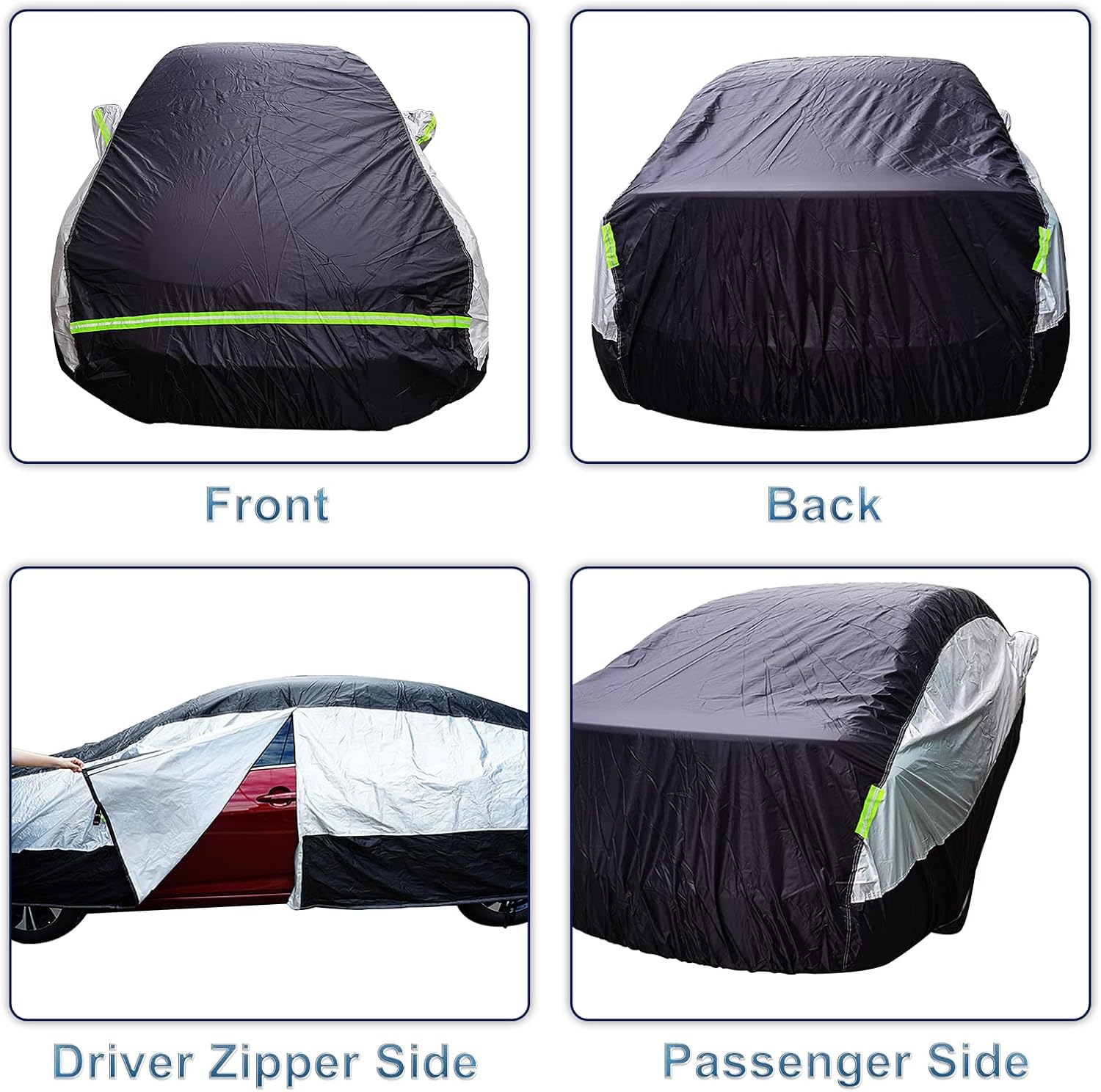 - 【Car Cover Waterproof All Weather】(1) Universal car covers are durable, portable and suitable for all seasons. (2) Special fabric resists harsh conditions. (3) Protects against Rain, Snow, Sun, Bird Droppings, and more.
