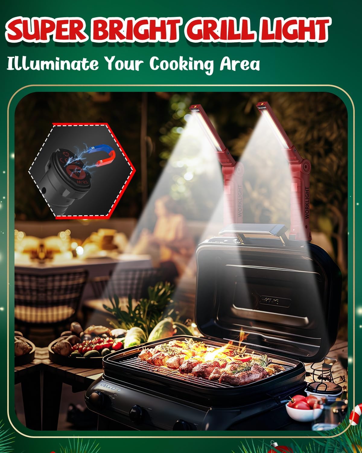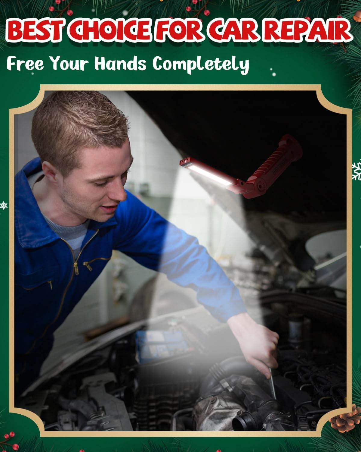 Coquimbo Tools Gifts for Men Dad Husband, Rechargeable LED Work Light Grill Light Magnetic Flashlight with Hanging Hook 5 Modes 360° Rotate Birthday Gifts for Him Grandpa (2 Pack Red)