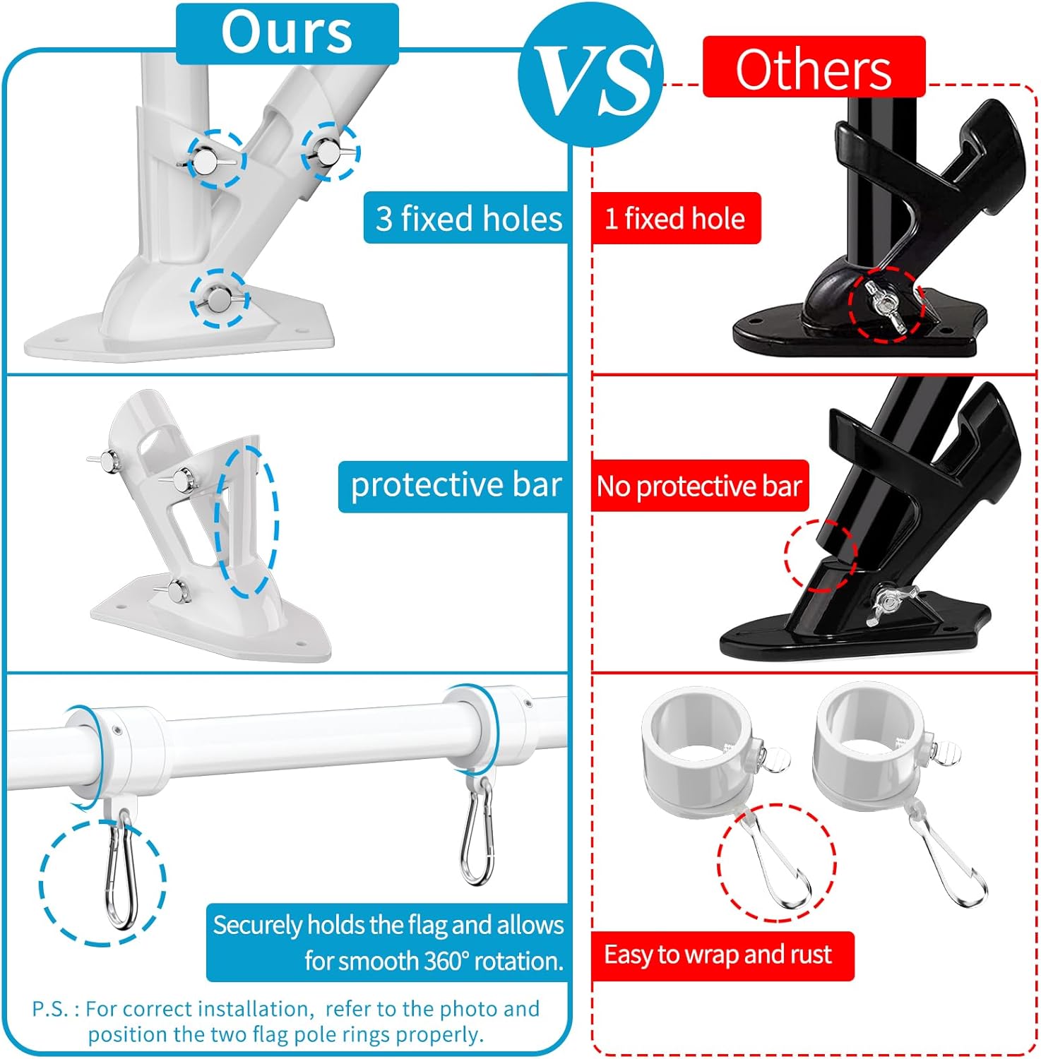 - Exquisite Design: 1*Flag Pole Diameter 1'', 1*Upgraded Bracket, 2*New Tangle Free Rings, 4*Carabiners, 1*Top Ball, 1*Installation Manual