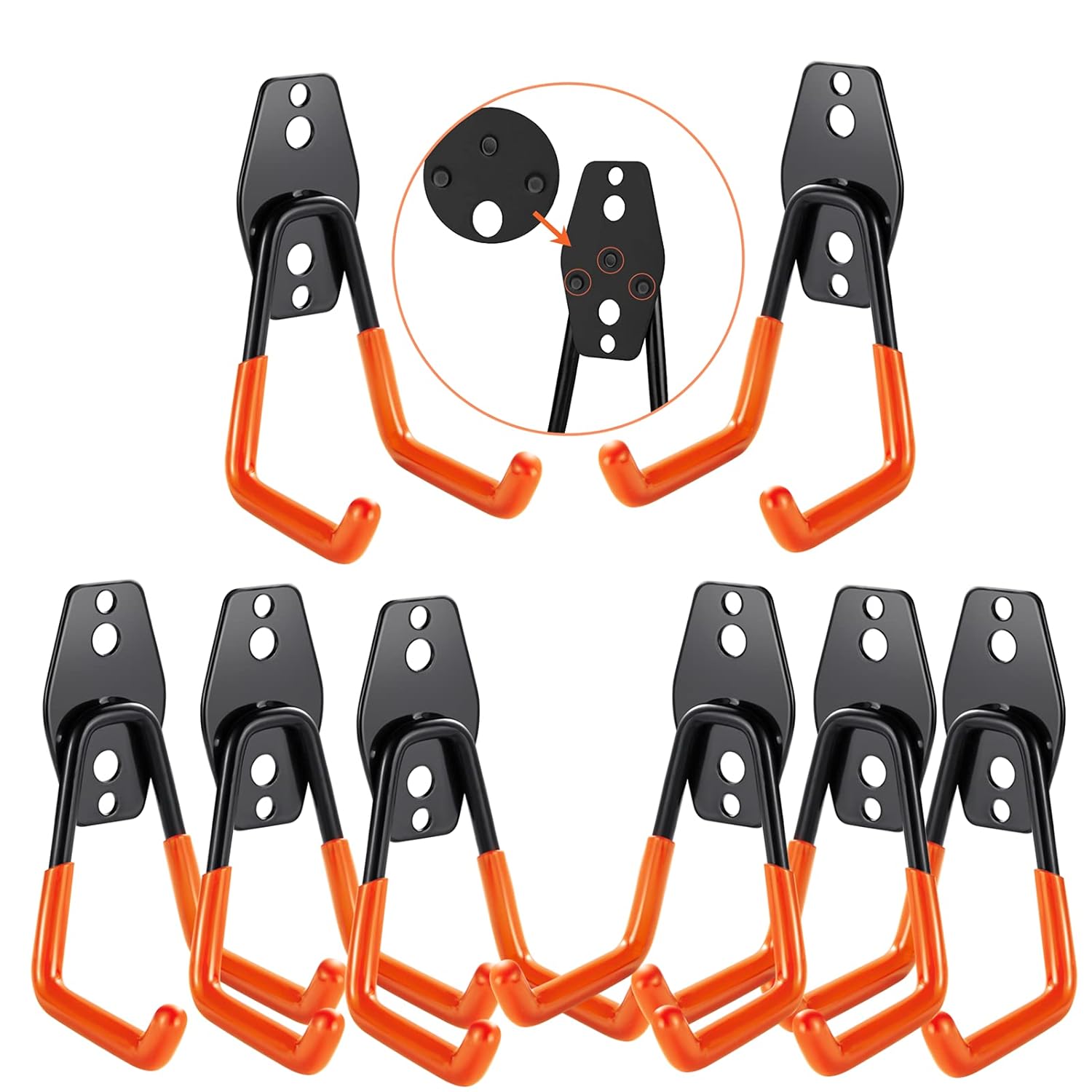 - PERFECT FOR HEAVY OBJECTS –Garage hooks is a set of 8 wall mounted double hooks,8 small U hook . The extended length and anti-slip coating let you organise and hang heavy objects for up to 80lbs.