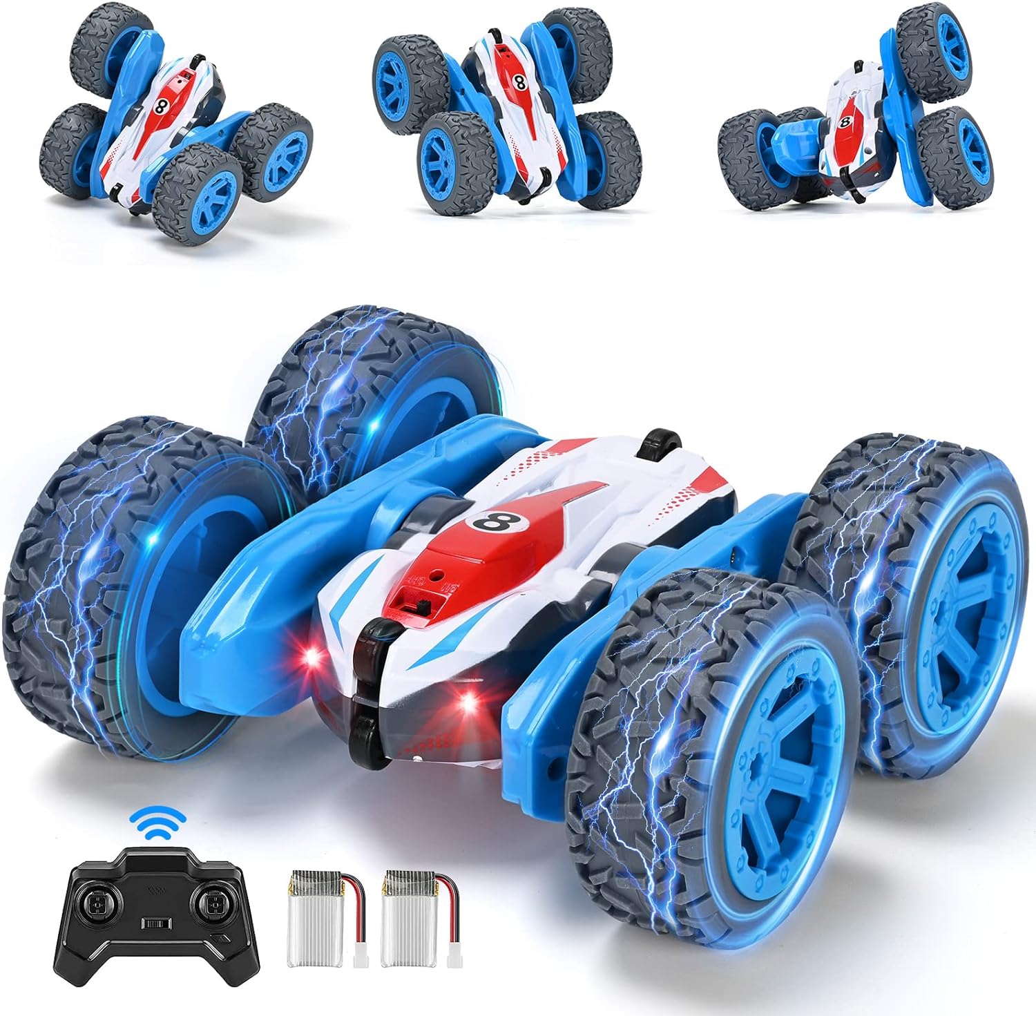 Remote Control Car, 4WD RC Cars Stunt Double Sided 360° Rotating 2 Batteries 2.4Ghz RC Truck with Headlight Birthday Gift for Boys 3 4 5 6 7 8 Year Old