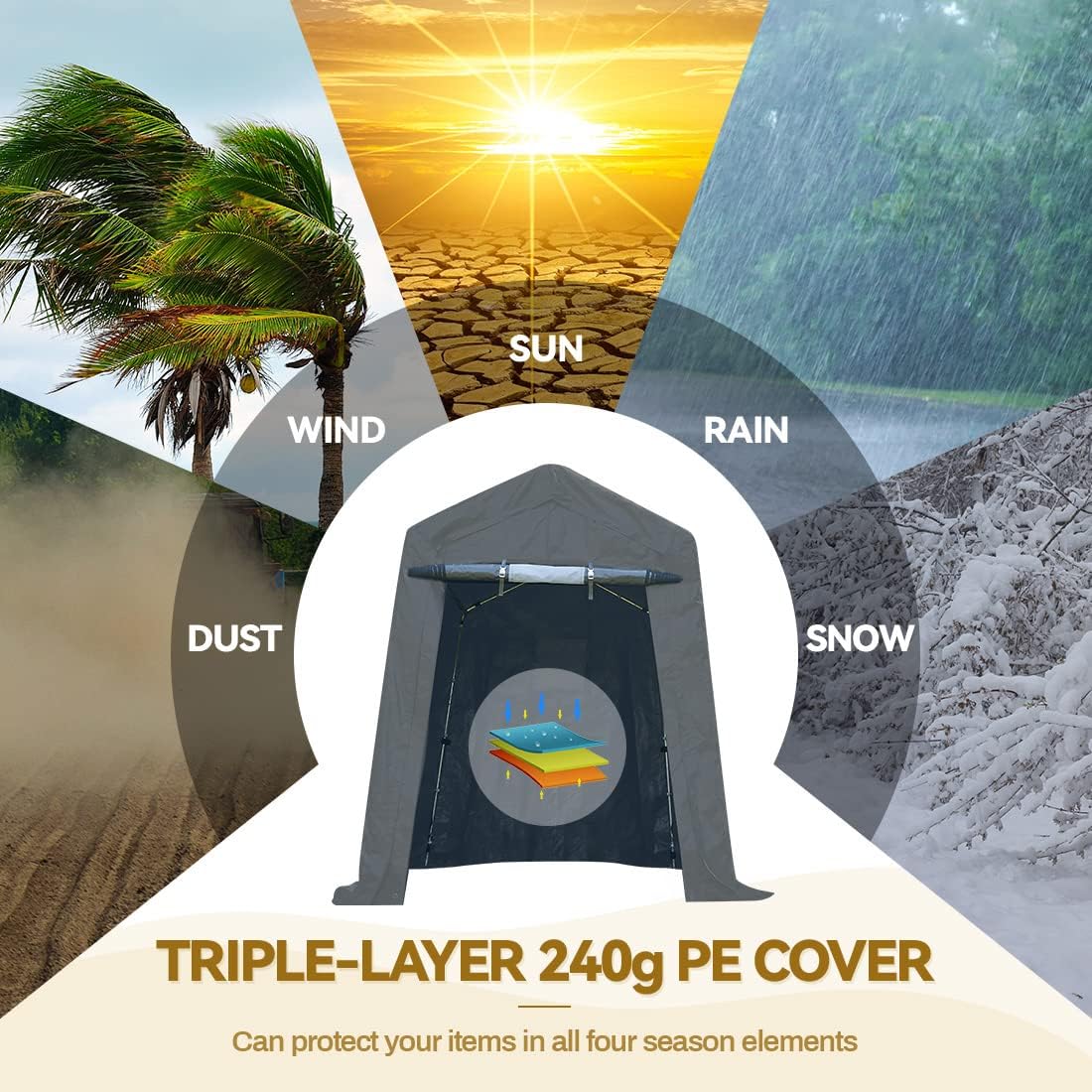 ADVANCE OUTDOOR 6X8 ft Outdoor Portable Storage Shelter Shed with 2 Rolled up Zipper Doors & Vents Carport for Motorcycle Waterproof and UV Resistant Portable Garage Kit Tent, Gray