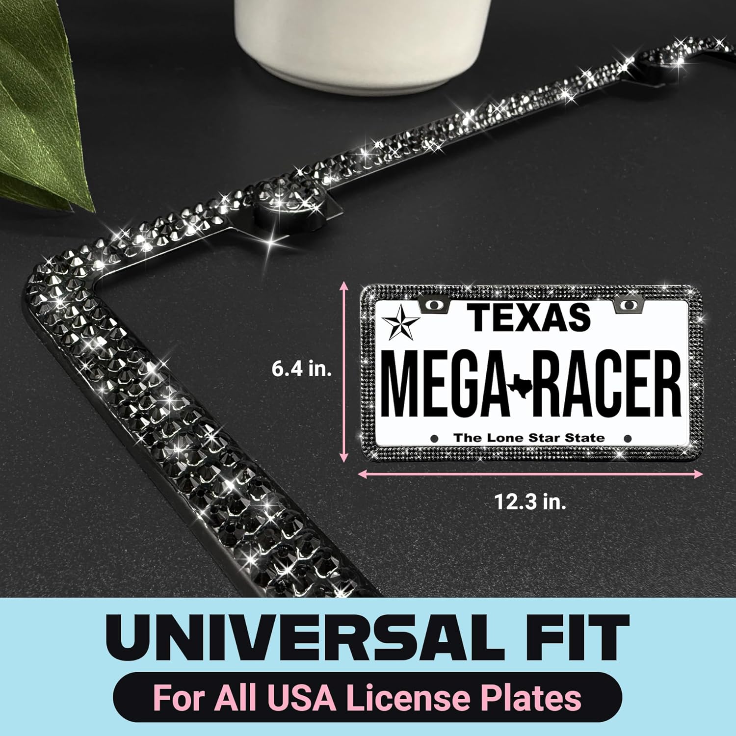 - Black Rhinestone Bling License Plate Frame for Women: Add a girly, glittery touch to your ride with this stunning 1-pack that’s made to shine.