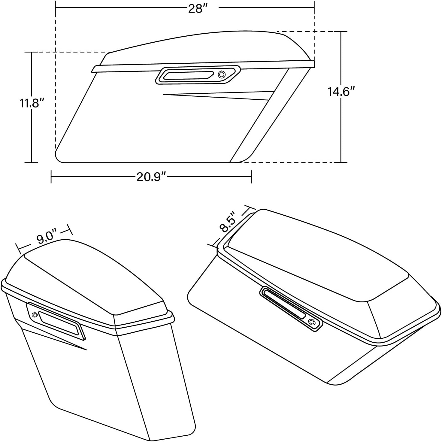 - FEATURE - Saddlebags dimension is 28" Length x 9" Width x 14.6" Height, provide high capacity to meet your storage demand while riding, such as clothing, drinks, tools or other daily necessities