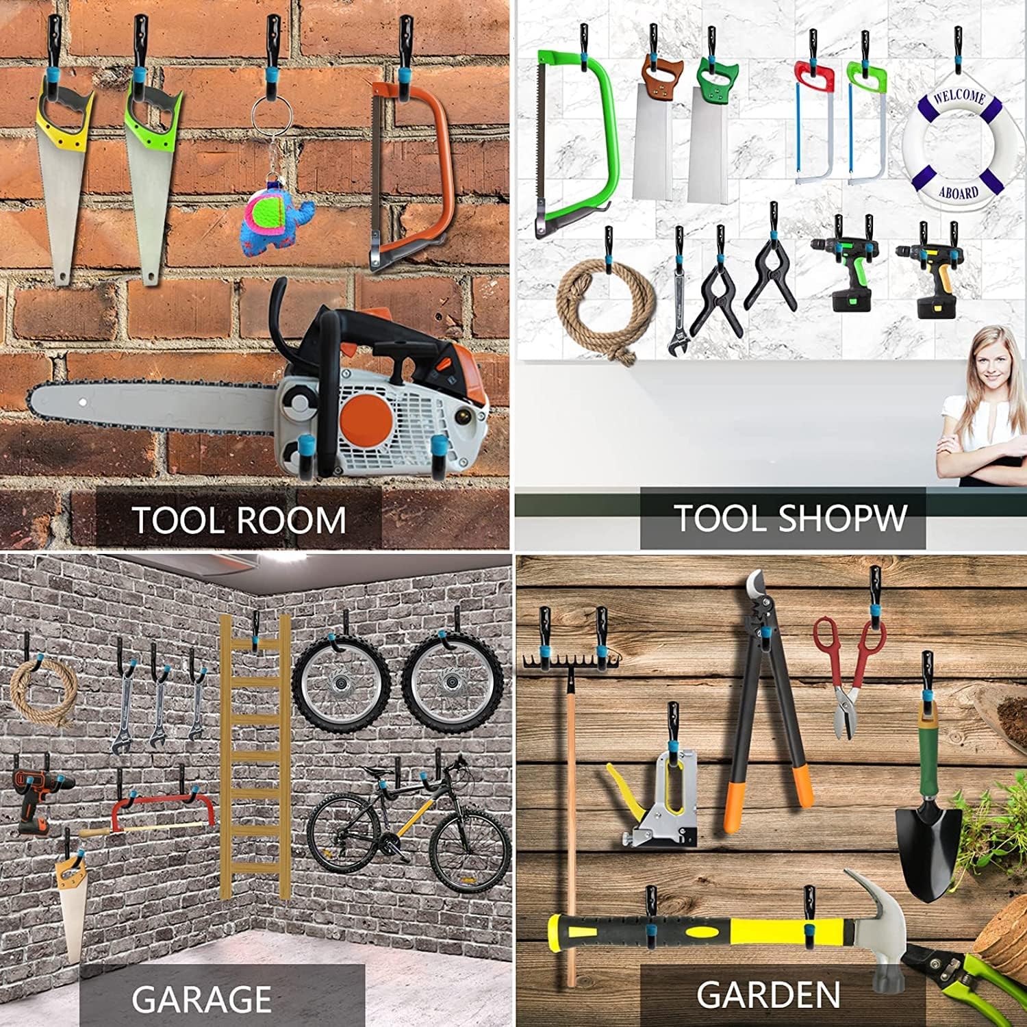 - GARAGE HOOKS: Heavy duty hooks are great for organization especially with garden tools, hoses, lawn mowers, sports equipment bag, leaf/snow blowers, toy.