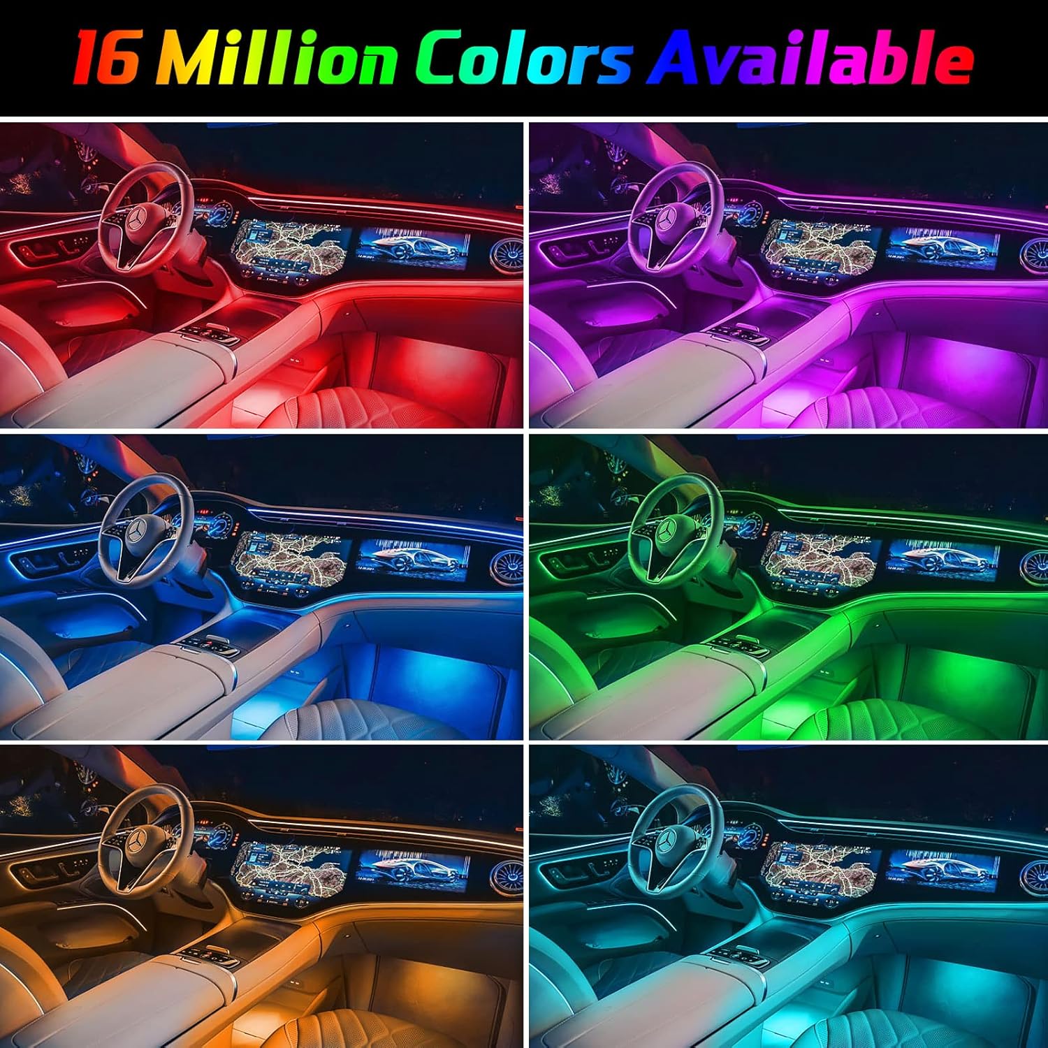 - 【Upgraded 10 Lights Car Lights】 This interior LED light comes with 6 fiber optic lights and 4 footlights that can be mounted on your car's dashboard, center console, 4 doors, and 4 footwells. (can replace any parts.)