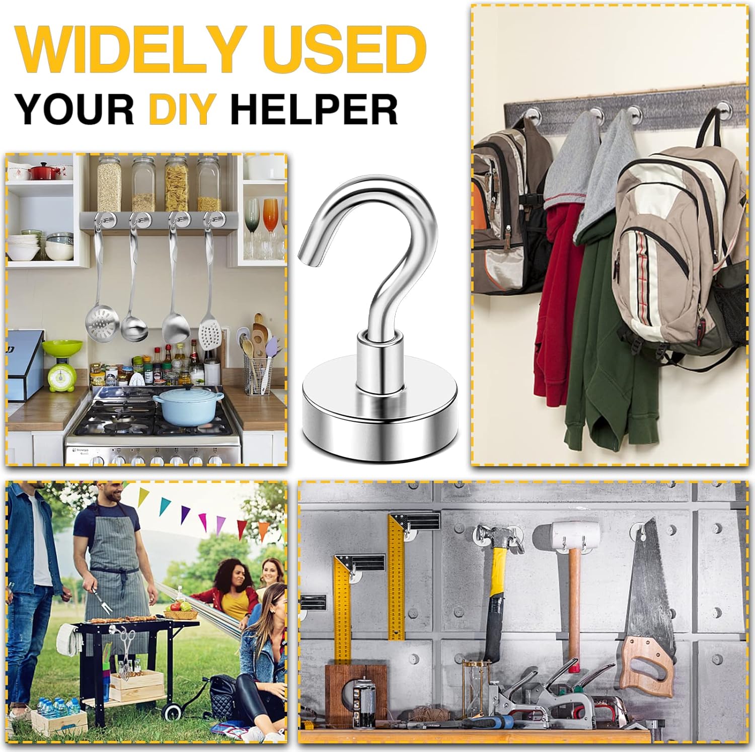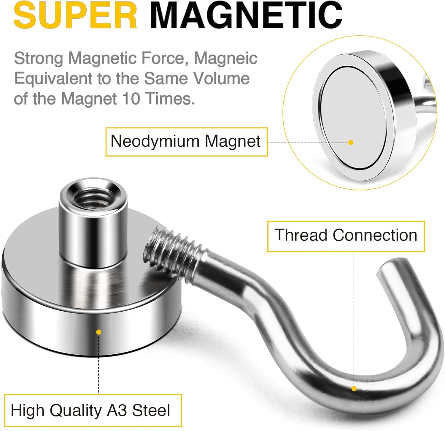 - 【Super Durablel】The magnetic hooks heavy duty is coated with three layers: Ni-Cu-Ni, so the strong magnets is shiny and anti-rust, provides protection for the magnet hooks and helps the hook to chip or crack. Magnetism is always strong!