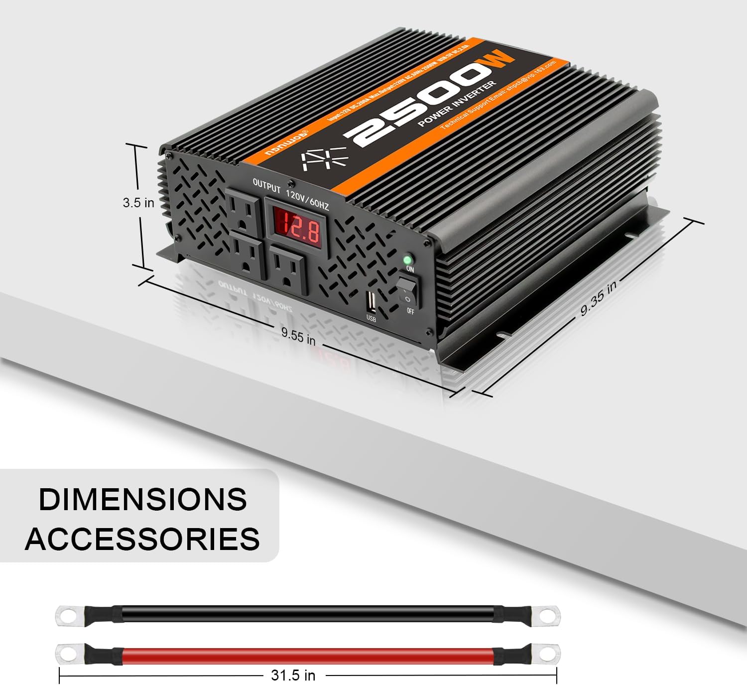 - 7.【More You Get】: 1x inverter 2000 watt + / truck converter + 3 x Battery cables, 1x user manual, 12 months free Warranty, Inverter (L x W x H) size: 9.5*9.3*3.4 in, weight: 10.1 lbs