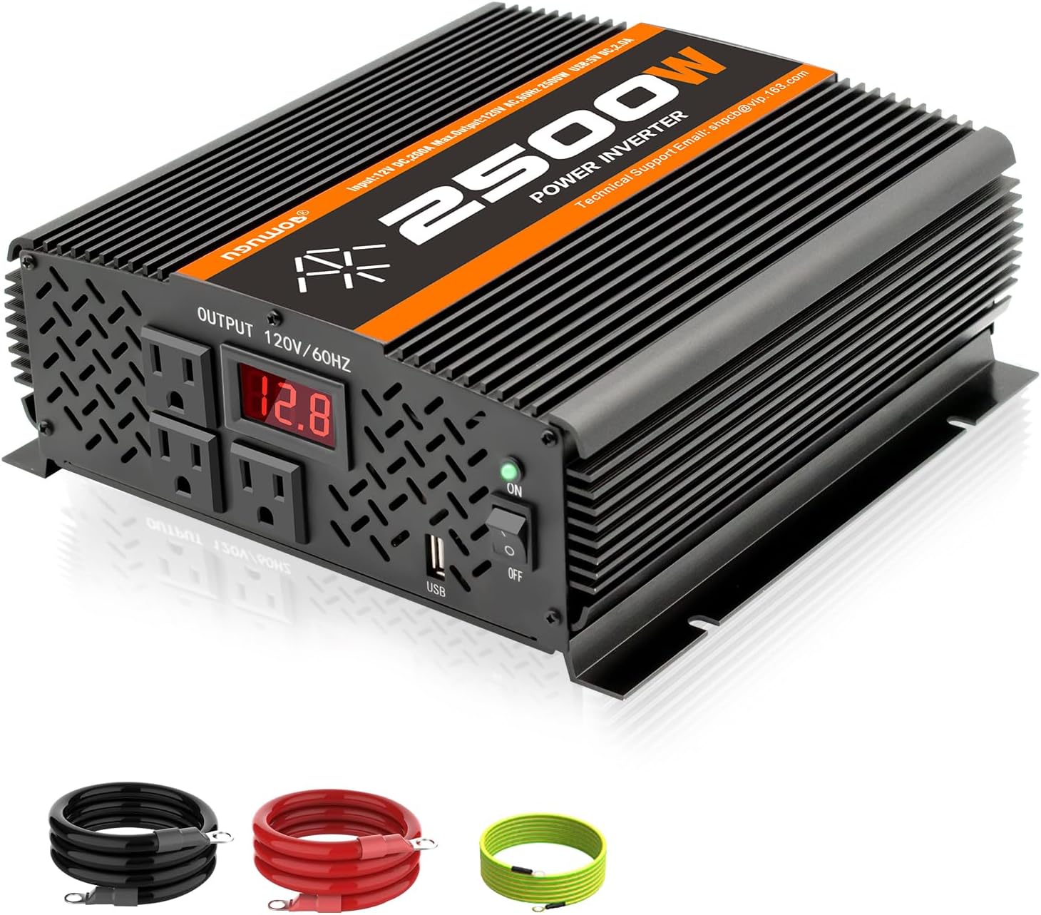 - 1.【Feature】1.TVNIKD 2500 watt inverter features with 3 AC power outlets and 1 smart 2 A USB port, converting 12V DC to standard 110V AC, rate 2500W, up to 5000W peak power output by connecting inverter to a 12V DC battery. The inverter for cars, trucks , semi trucks , RV , Van, trailer, various vehicles , outdoor, solar, tourism, camping, tents, boat, remote workplace or anywhere that needs AC power.