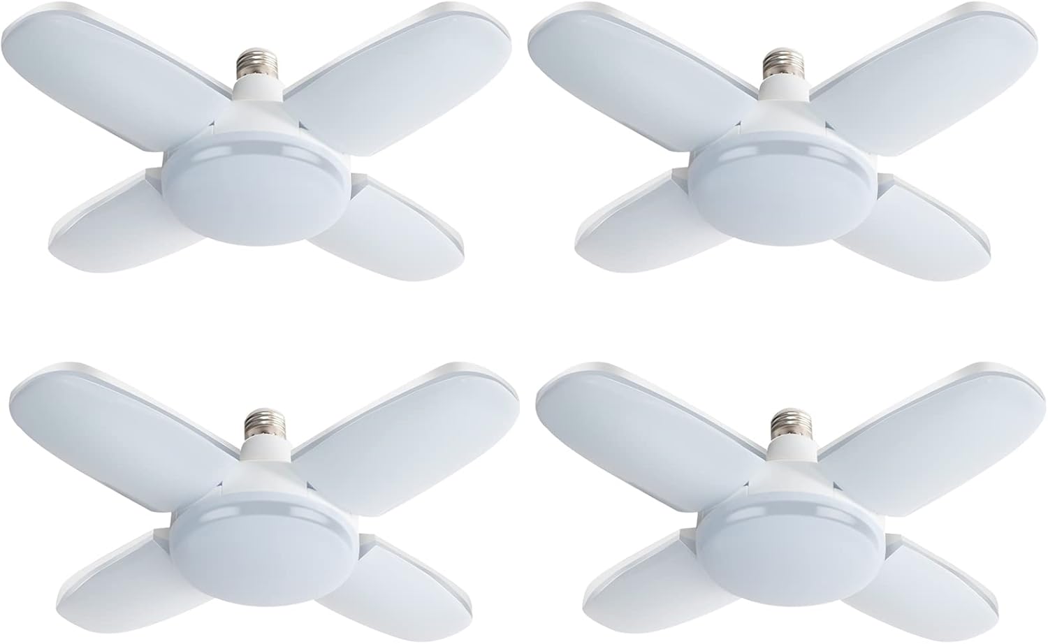 LED Garage Lights 4 Pack, 80W LED Shop Light with 4+1 Multi-Position Panels Deformable E26/E27 Ceiling Light, 6500k 8000LM Ceiling Led Daylight for Shop, Basement, Workshop, Attic, Barn