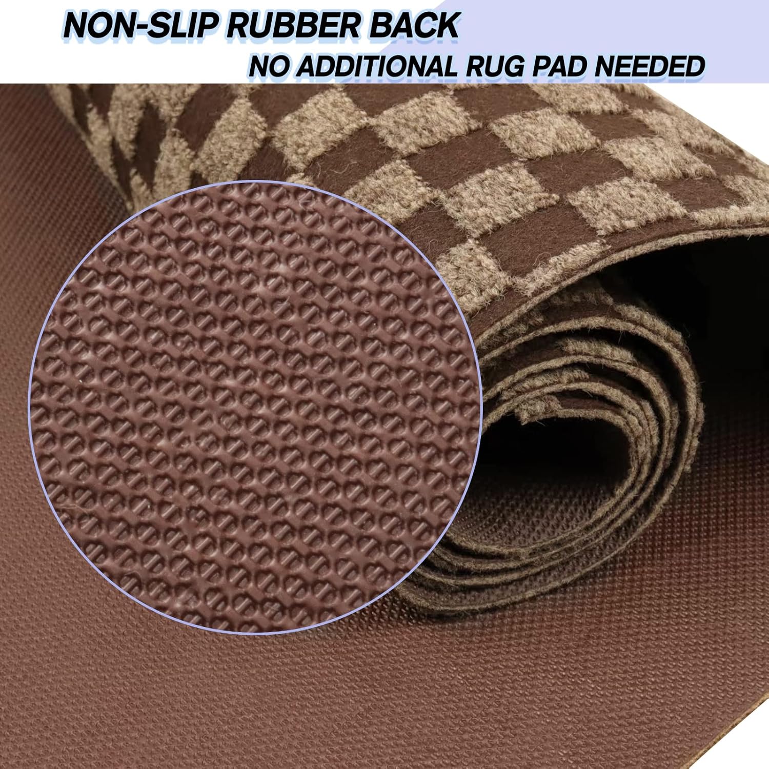 Custom Size Backed Non-Slip Area Rugs Runner, Easy Clean, Waterproof Runner Rugs for Hallway Entryway, Kitchen, Laundry, 2FT x 58FT, Brown Checkered