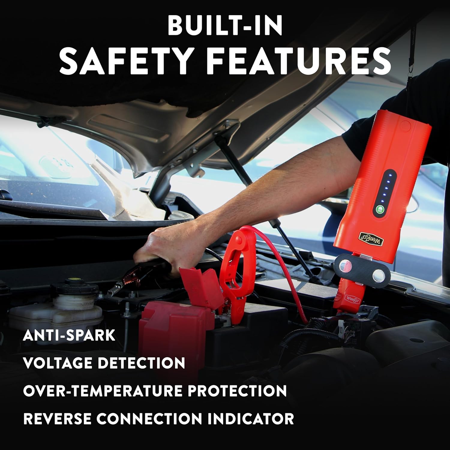 - SAFE AND EASY TO USE: Contains built-in safety protections like anti-spark, reverse polarity, power surge and more. A series of lights and sounds alert to a solid connection and guide you through a jump.