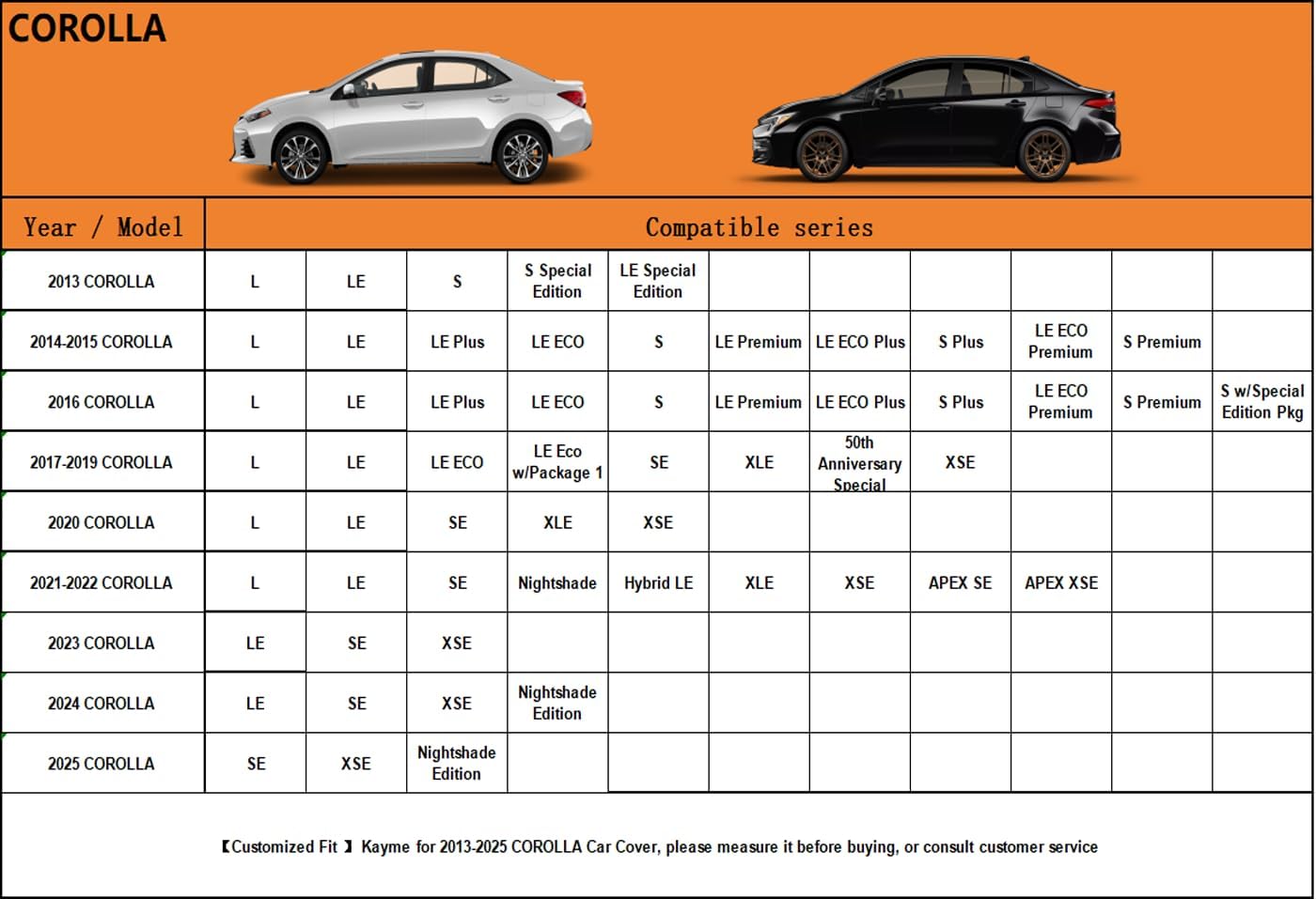 - 【Suitable for】— Custom fit for toyota corolla sedan(2000-2025),Come with a large enough portable bag to store your cover when you do not use.