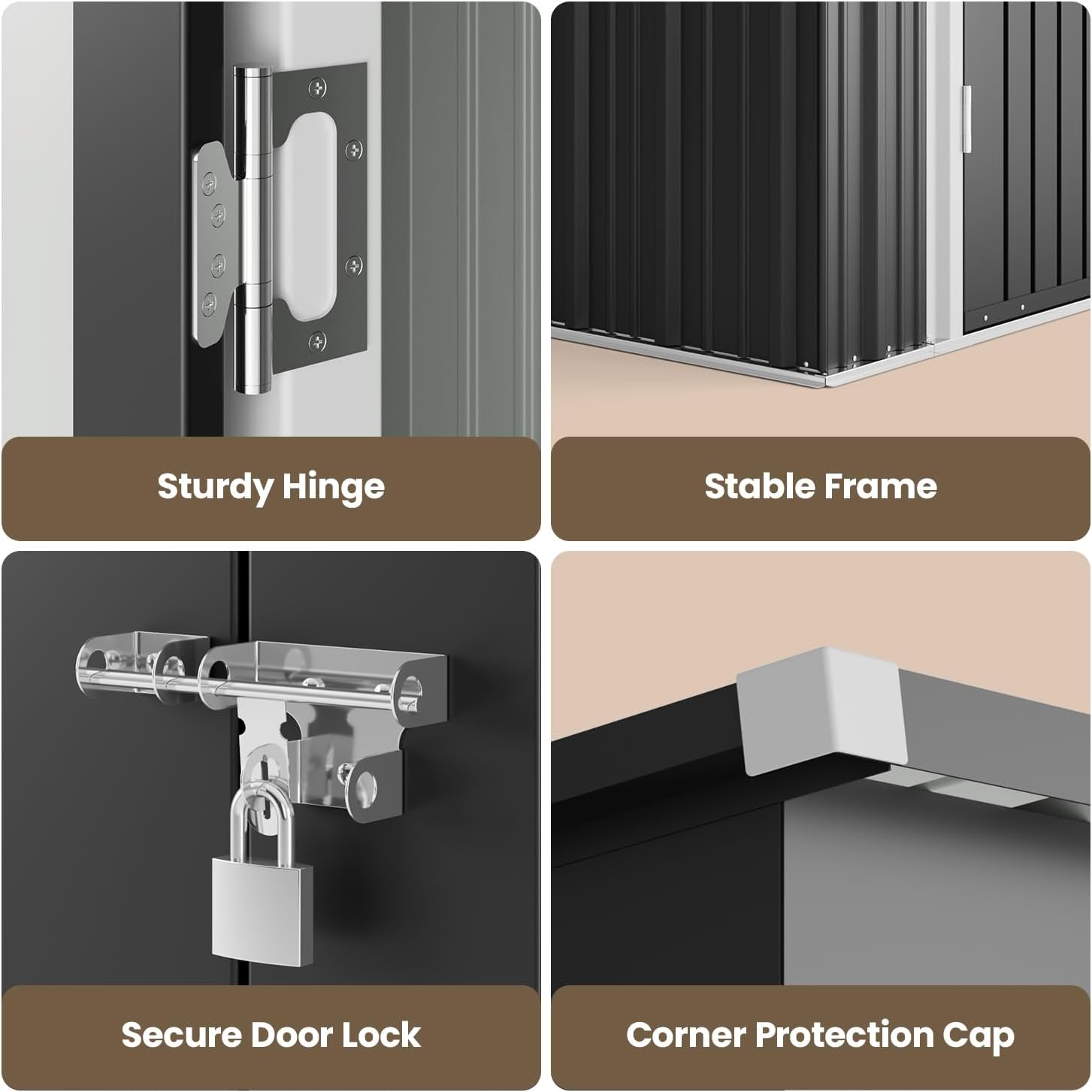 - 【High-quality Material】Made from thicker galvanized steel, this Bealife garden storage is built for durability. Its UV-resistant finish protects it from sun damage, while built-in vents promote airflow to prevent overheating. Furthermore, the door of this backyard storage shed is equipped with a lock, which can perfectly protect your outdoor belongings.