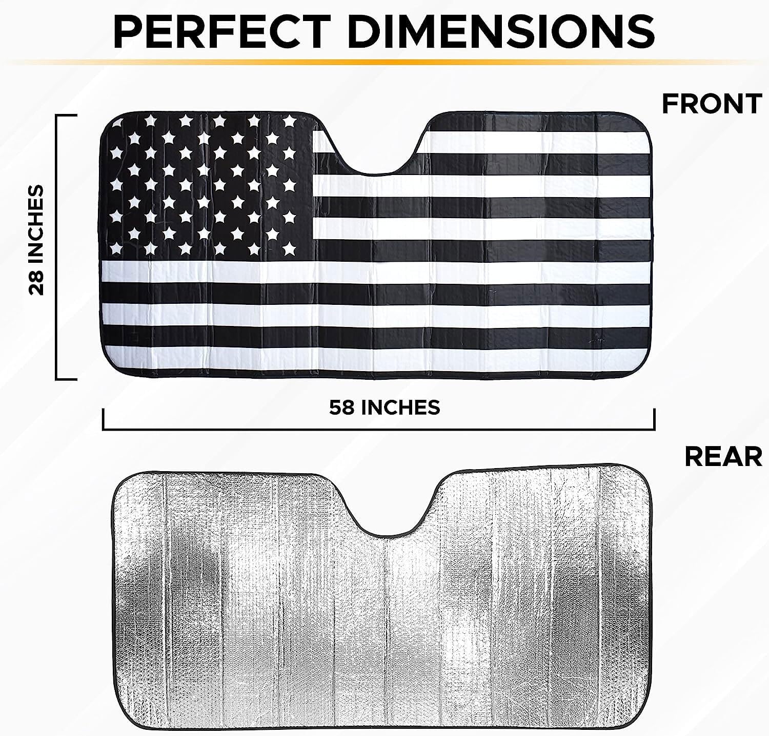 EcoNour Accordion Car Windshield Sun Shade American Flag Design | Reflective Car Window Shades for UV Protection & Heat Block | Foldable Sun Shield for Front Window | 58 x 27.5 Inches