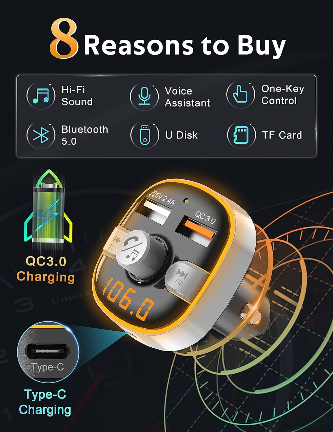 - 【Function Collection】 What are your expectations? Type-C PD Charging port, Dual USB ports, QC 3.0 fast charge, Hand-free calls, Voice assistant, High-fidelity sound quality output, LED display, 7 colors and 2 modes of ambient light, Support U disk, TF card and Bluetooth 3 music playback modes. It can make you love your car more.