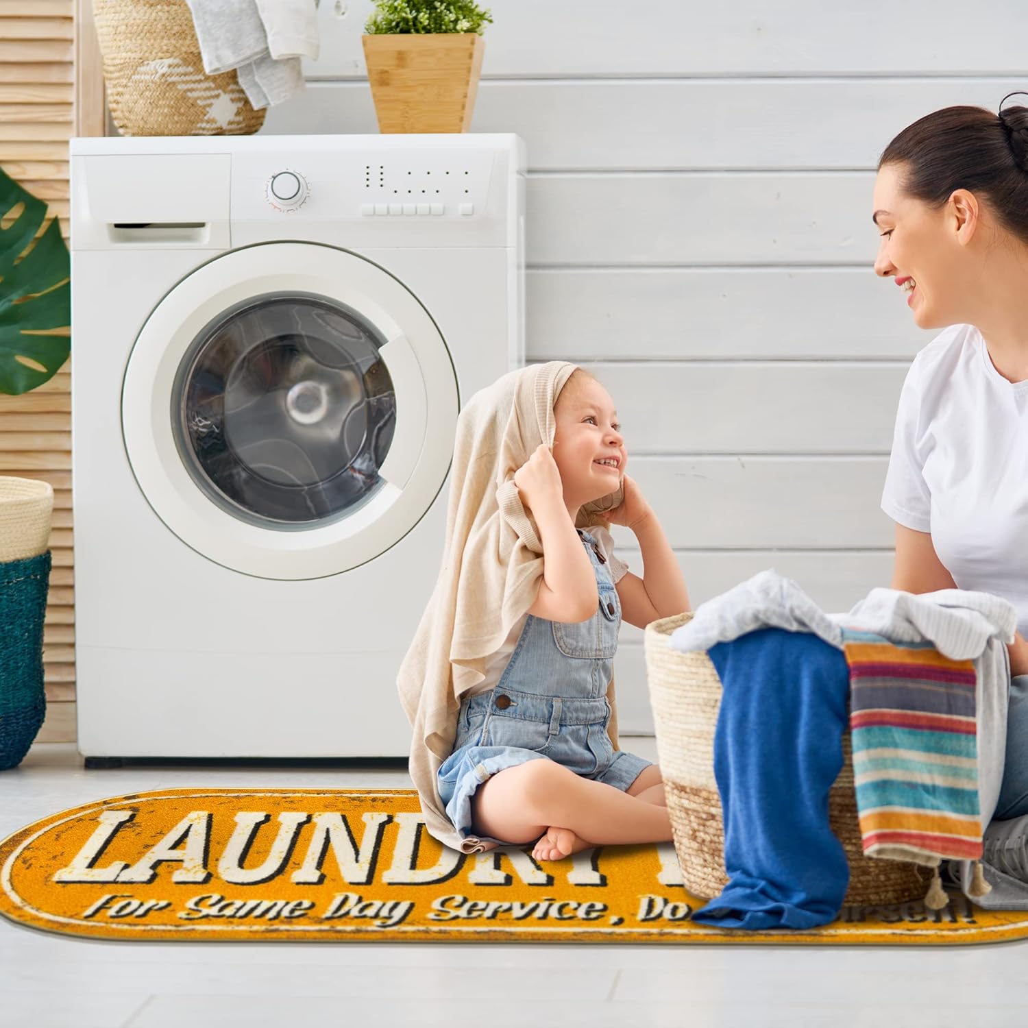 - [TRENDY STYLE]: This fun rug features a laundry print design adding color and enhancing the look of your home. Its timeless design can be integrated into a variety of home décor styles.