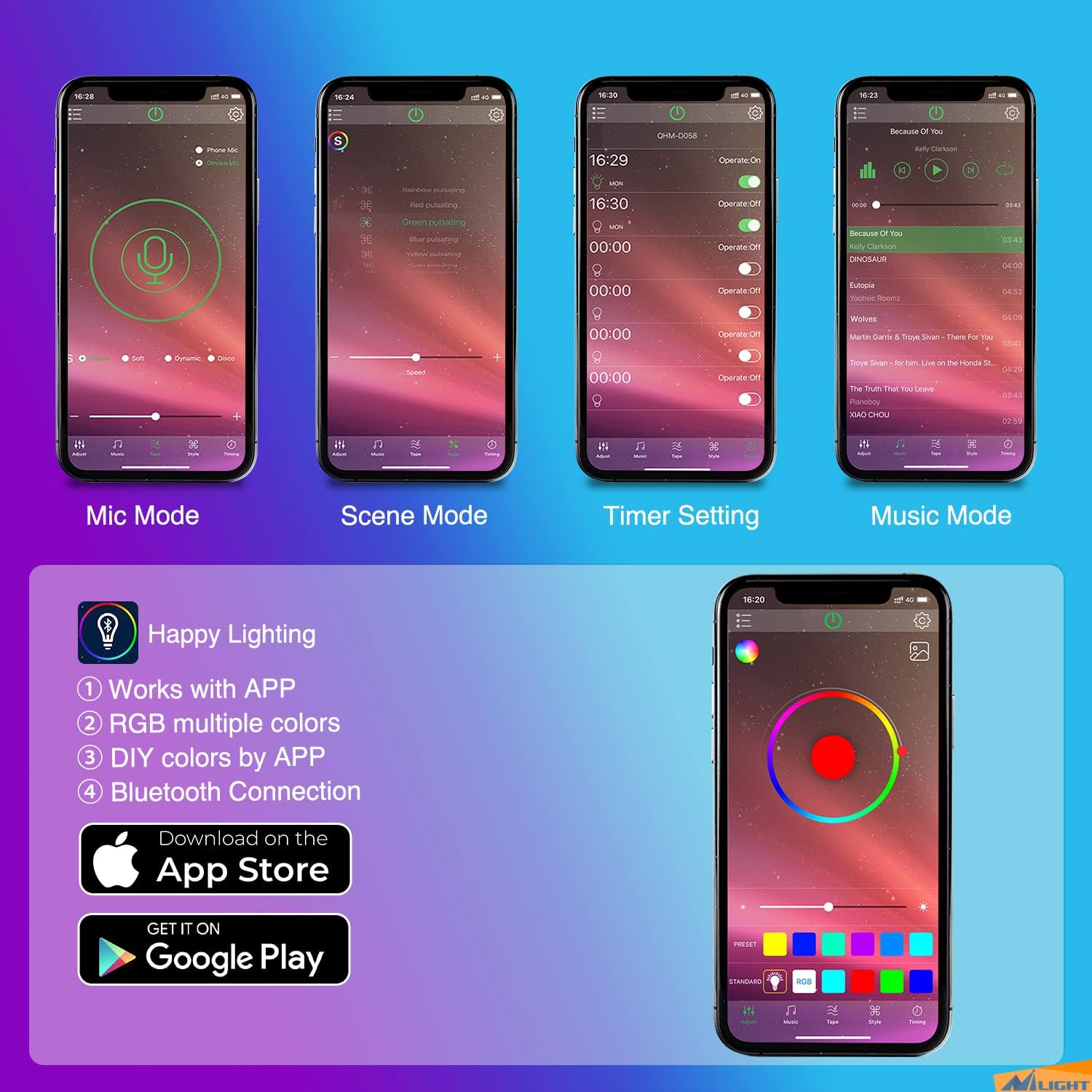 - Dual controller: You can use the manual controller and the smart Happy Light APP to select the color mode and music dynamic mode you want:DIY color, scene mode selection, music mode, timing Settings, rhythm.