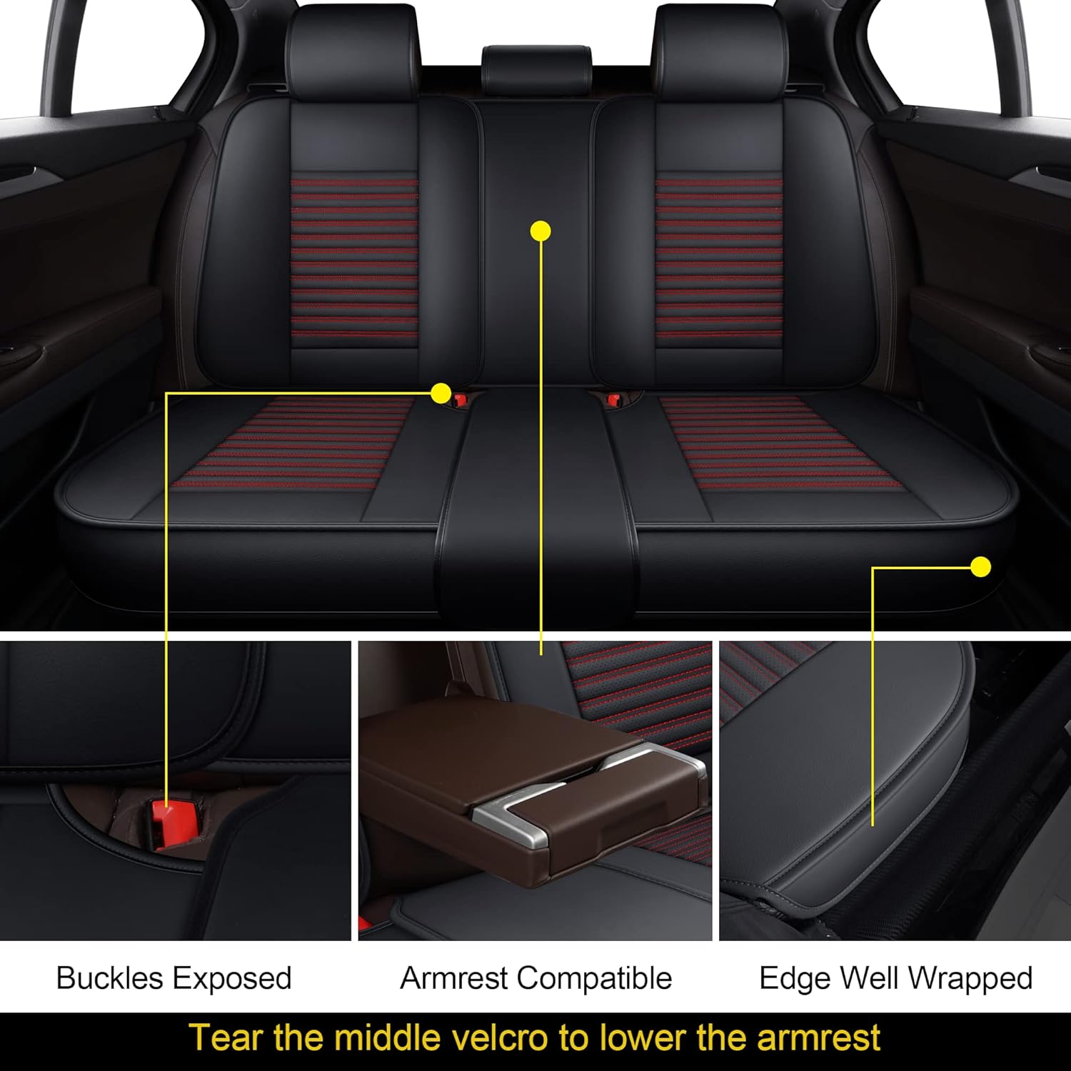 LINGVIDO Leather Car Seat Covers,Breathable and Waterproof Faux Leather Automotive Seat Covers for Cars SUV Pick-up Truck Sedan,Universal Anti-Slip Driver Seat Cover with Backrest (Rear Seat, Red)