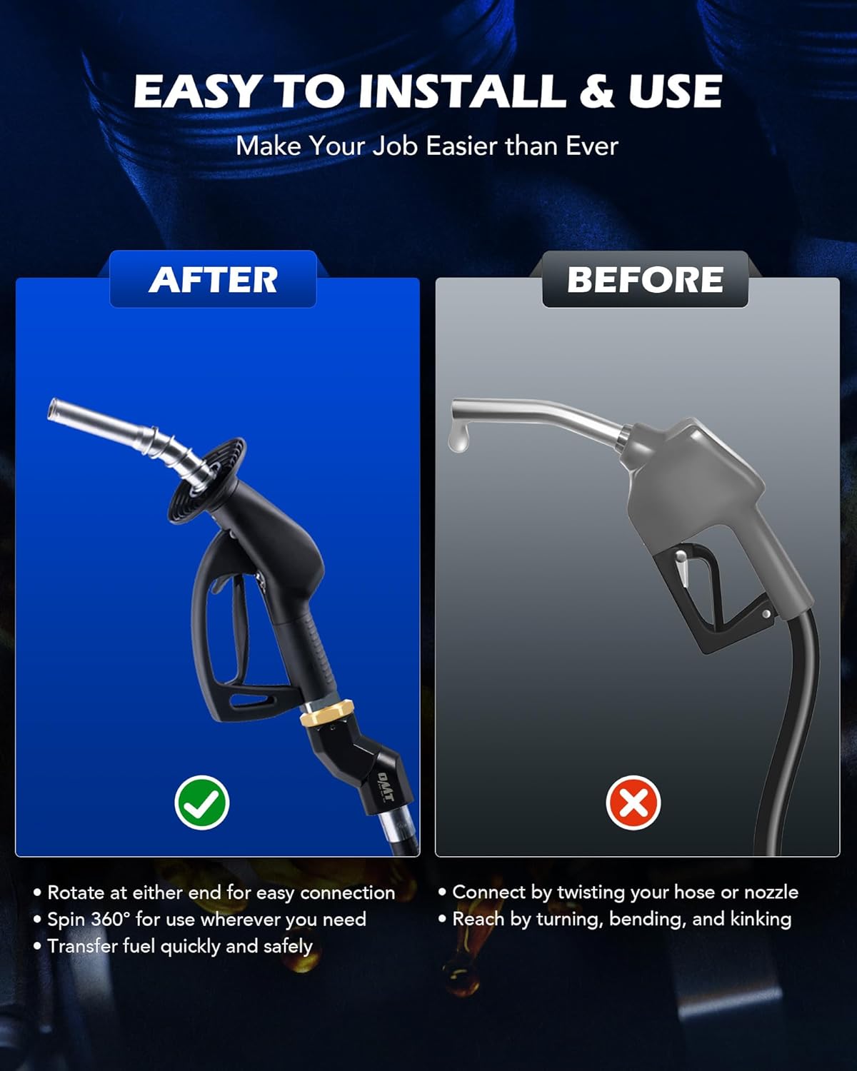 - MULTI-PLANE ROTATION: This 360 degree fuel hose swivel set from Orion Motor Tech allows you to get the perfect angle, filling your tank or vehicle with greater safety and convenience
