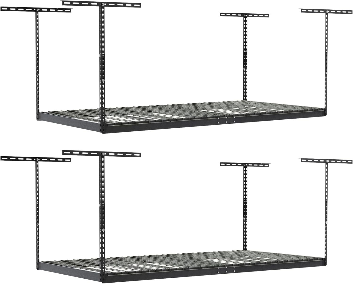SafeRacks Overhead Storage Rack, Heavy Duty 600 lb Capacity, Adjustable Garage Ceiling Mount Hammertone 24"-45" 2 Pack
