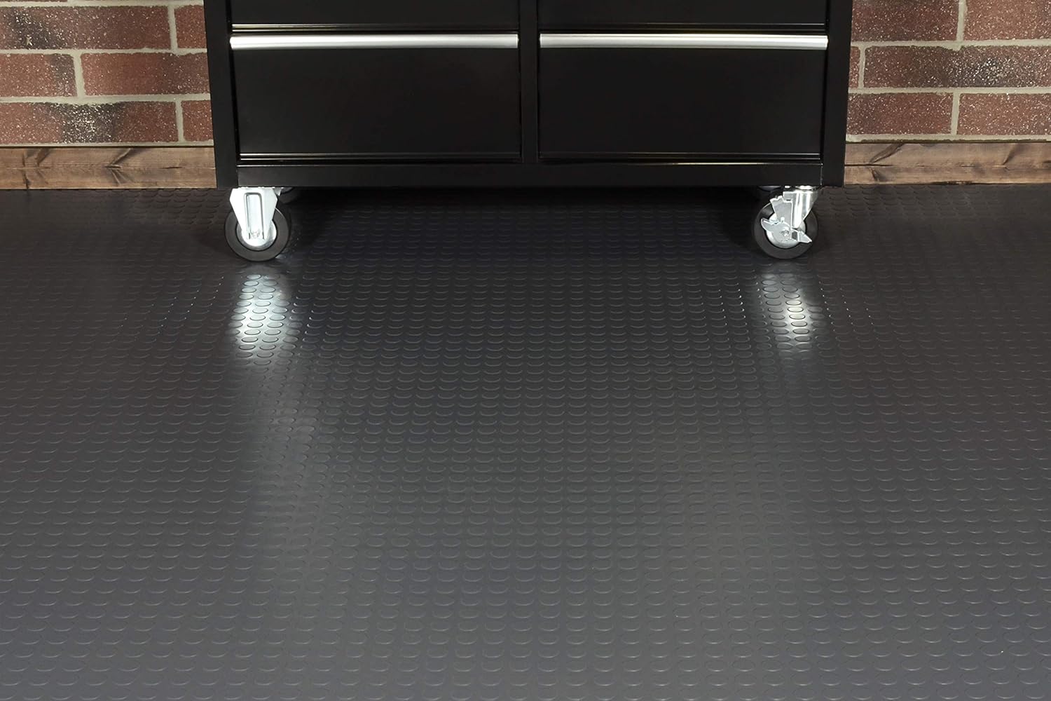 G-Floor Seamless Sheet Vinyl Shed Flooring Cover with Bonded Fibrous Backing - Coin Pattern (8' x 12', Slate Grey)