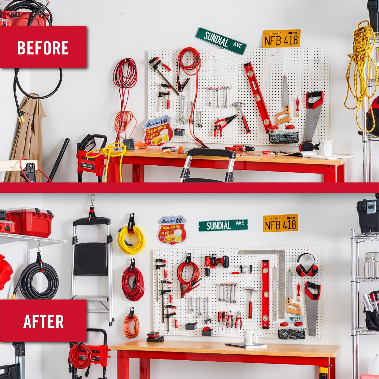 - MAKE GARAGE ORGANIZATION SIMPLE: Easy-open red pull tags make them easy to use; lighter and simpler than an extension cord reel, easy storage for garage