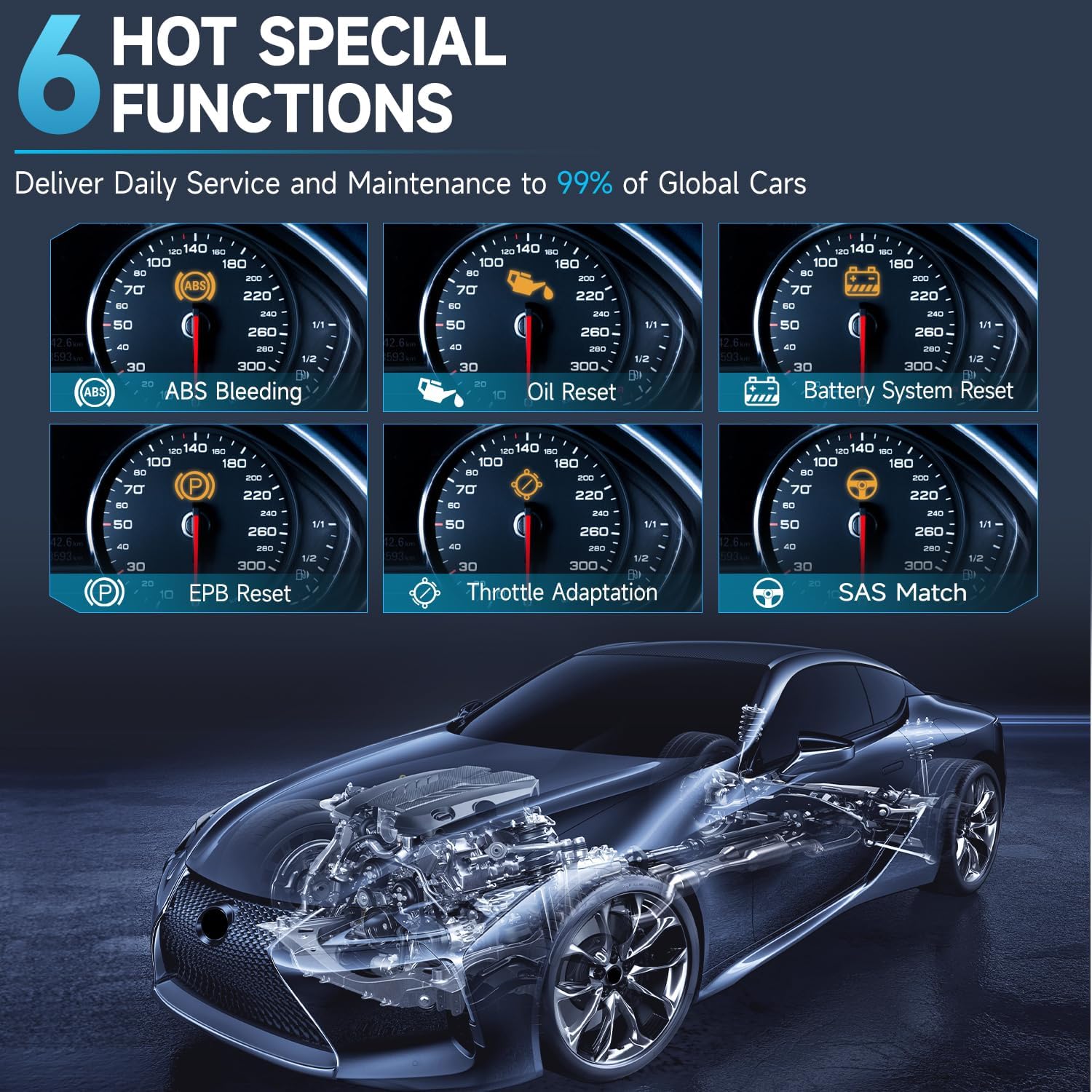 - 【6 Essential Resets: ABS Bleeding, Oil, EPB, SAS, Throttle, BMS】The IF745 swiftly purges air from brake lines to restore braking sensitivity, fine-tunes maintenance cycles to eliminate false alerts, resolves parking brake issues with one-click control, recalibrates steering sensors for stability, optimizes engine idling/acceleration for smoother performance, and deeply resets battery systems to extend lifespan and range via precise parameter adjustments.