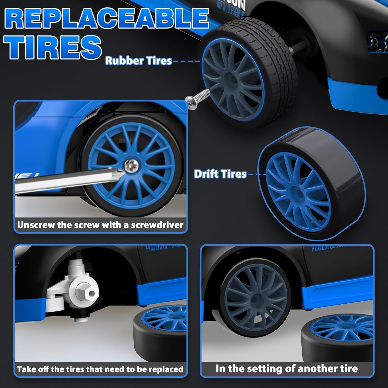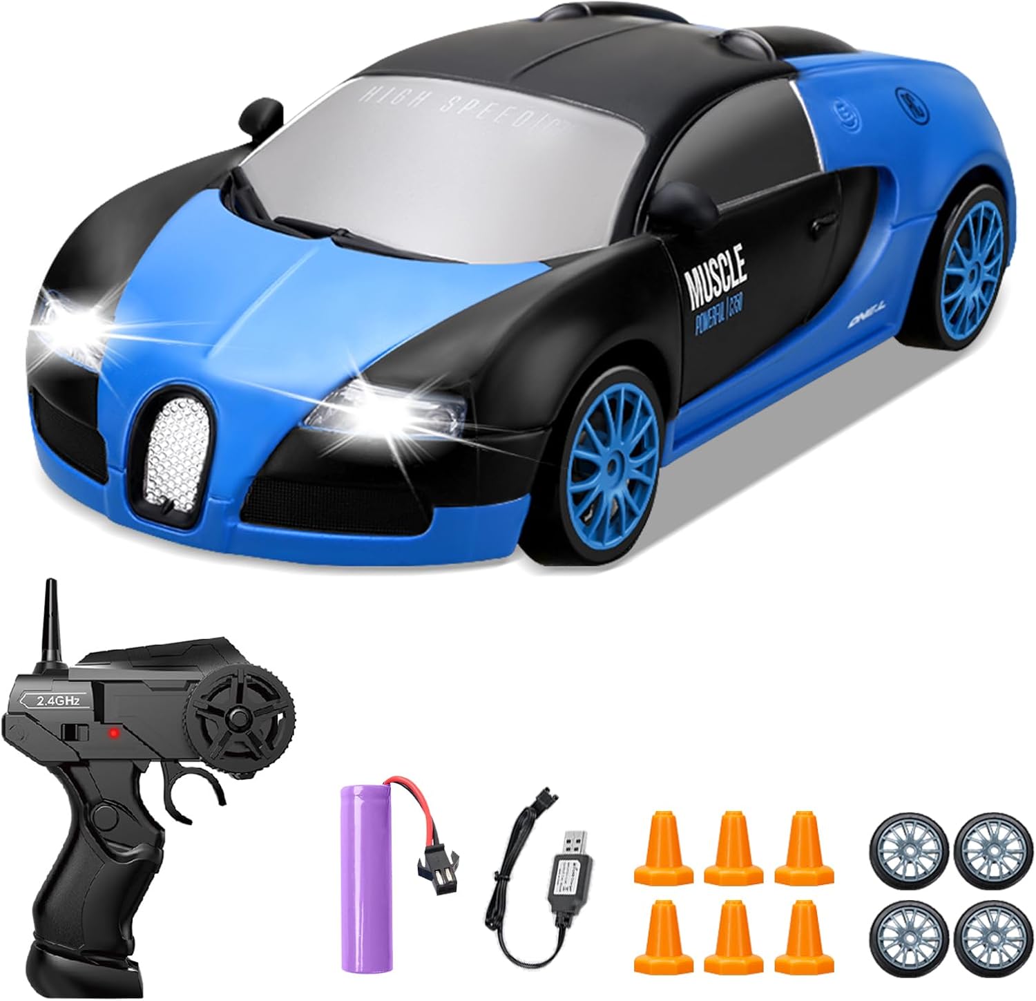 RC Drift Car, 1:24 4WD Drifting RC Cars 2.4GHz High Speed Remote Control Car with LED Light and Drift Tires Racing Toy Cars for Kids Boys Girls Adults, Blue