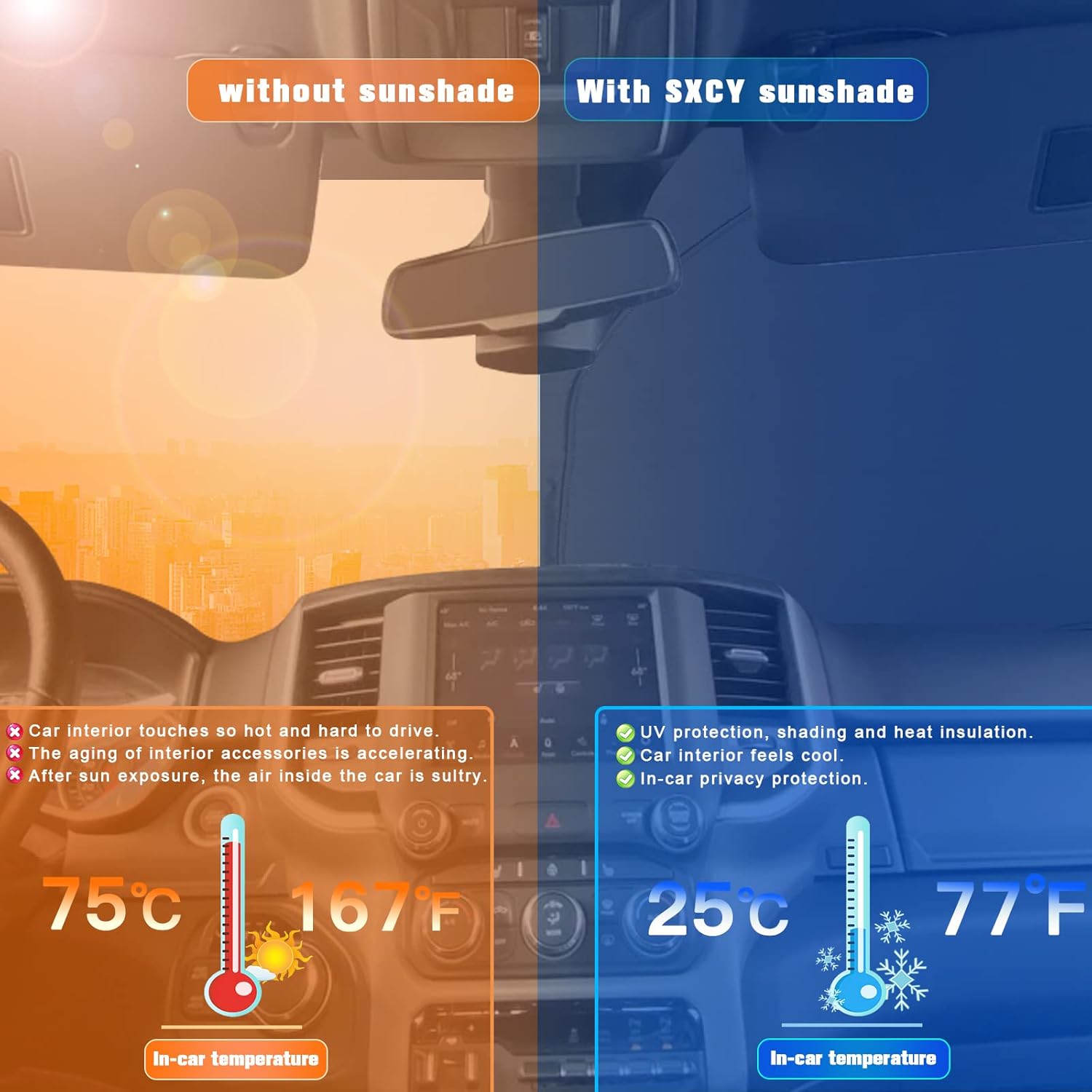 - 2.Sun Protection: Solve your concerns about parking for a long time under the scorching sun,prevent the car's interior from getting sunburned and extend your 2019 2020 2021 2022 2023 2024 Ram 1500 interior accessories’ life.