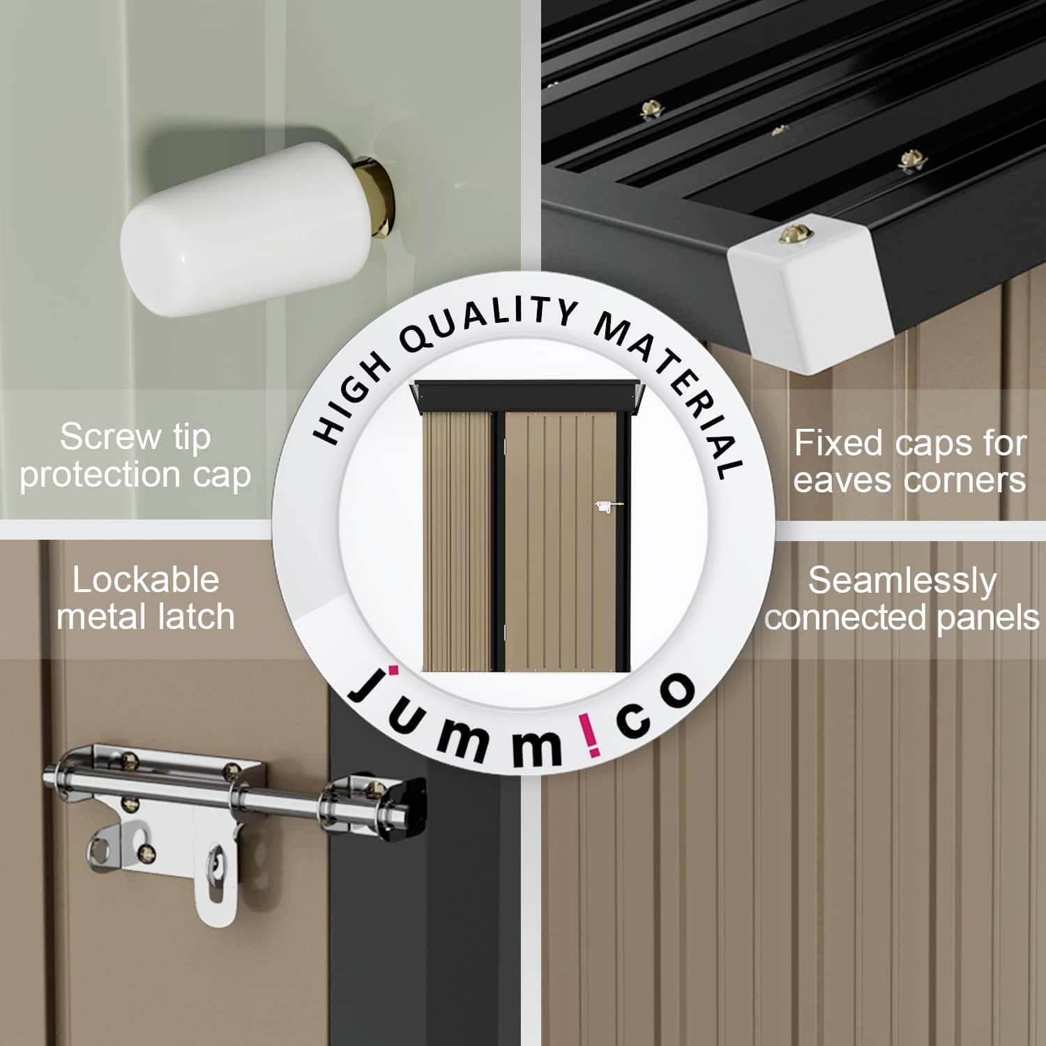 - [Strong & Durable Materials] 0.014" thick galvanized steel is used as the main material, which is not easy to deform. The number of iron sheets forming the side is reduced to 2 pieces, and the connection is tight. There are three reinforcing beams on the roof, which makes the tool room overall stronger and more durable in bad weather.