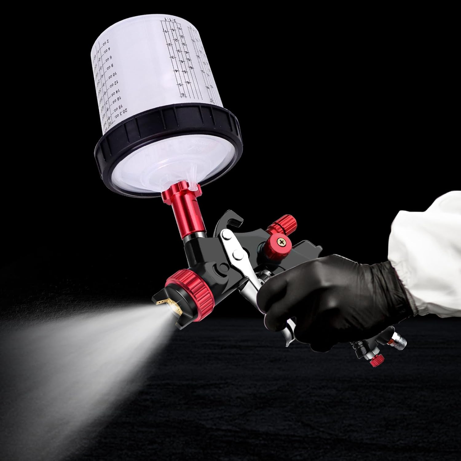- Easy to use: The plastic measuring cup has only three parts for easy installation. Our hard cup has clear graduations to determine mixing ratios for common paint systems and is transparent to easily see the liquid level.