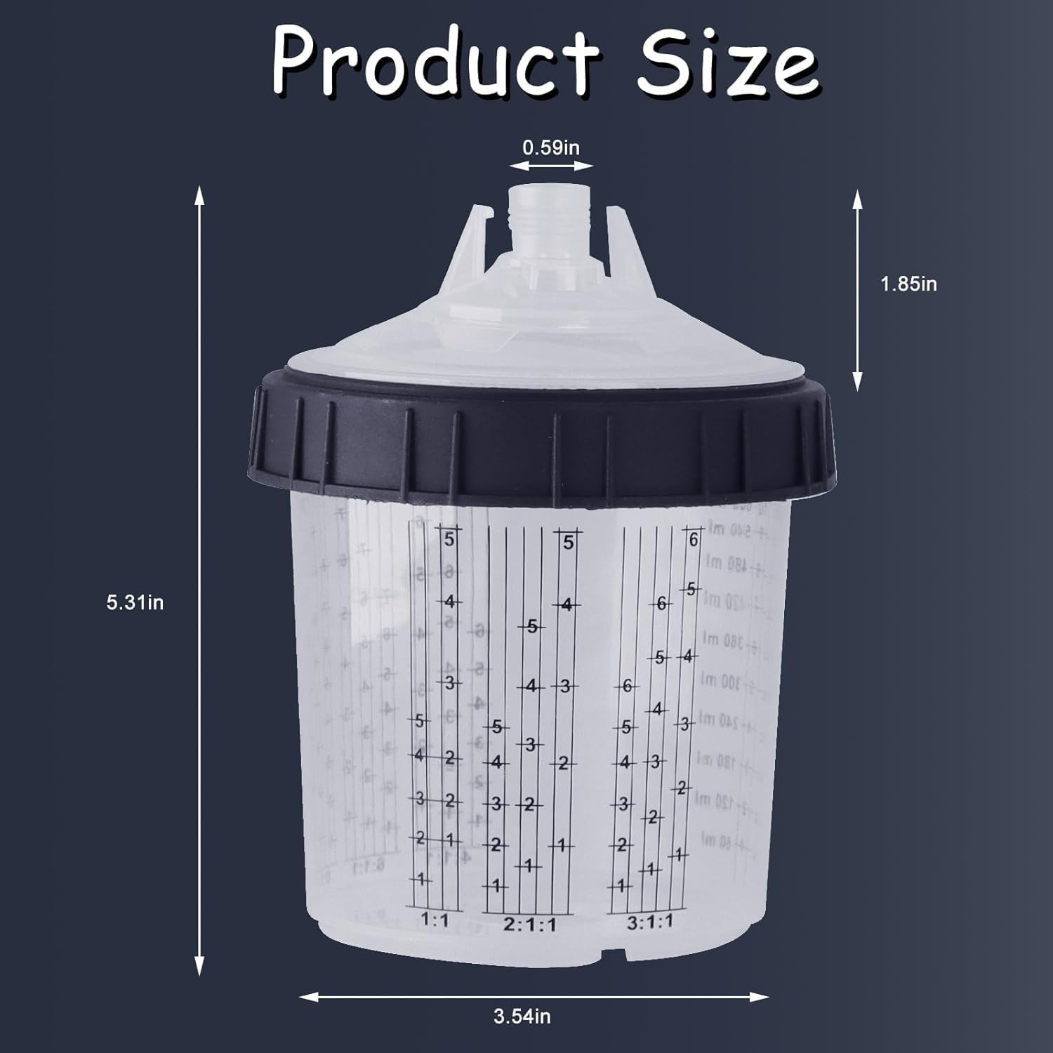 - Easy to Use: The plastic measuring cup has only three parts for easy installation. Our hard cup has clear graduations to determine mixing ratios for common paint systems and is transparent to easily see the liquid level.