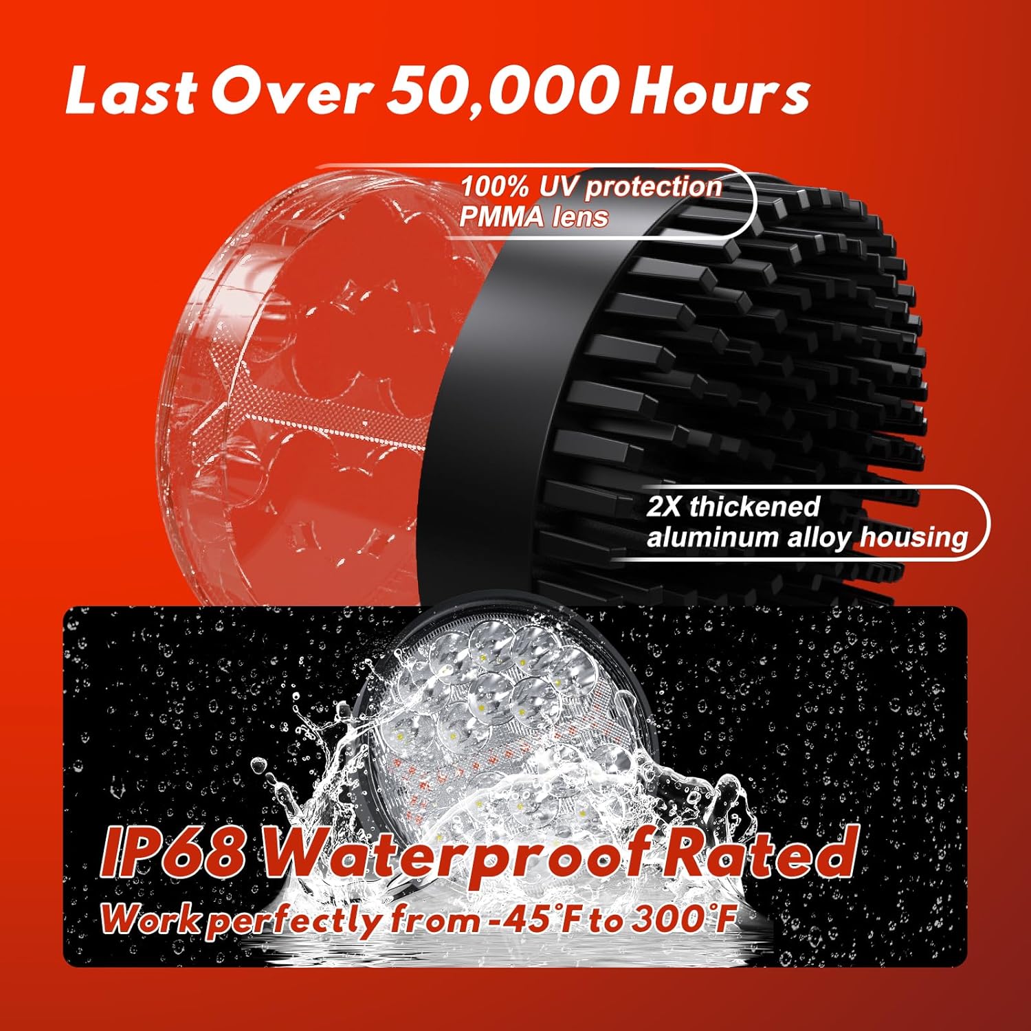 - 【Last Over 50,000 Hours】 100% UV protection PMMA, 2X thickened aluminum alloy housing, IP68 waterproof rated, work perfectly from -45°F to 300°F. We engineer to the highest quality for maximum brightness and endurance to withstand even the toughest conditions