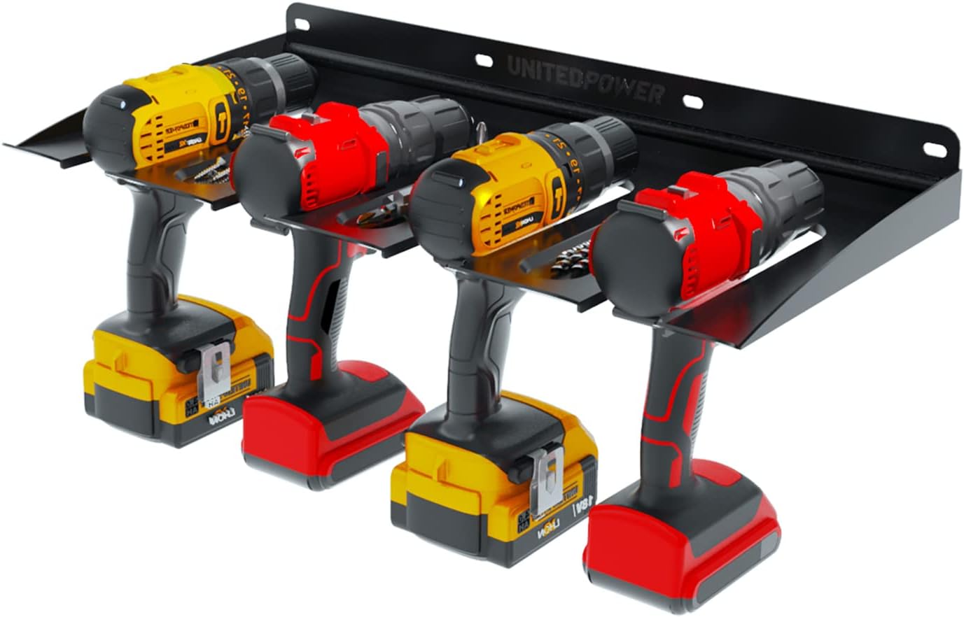 UNITEDPOWER Electric Drill Storage Rack, Holds 4 Drills, Wall Mounted Power Tool Organizer for Battery Powered Hand Tools, Workshop, Shed, Garage, Home (Drill Rack)