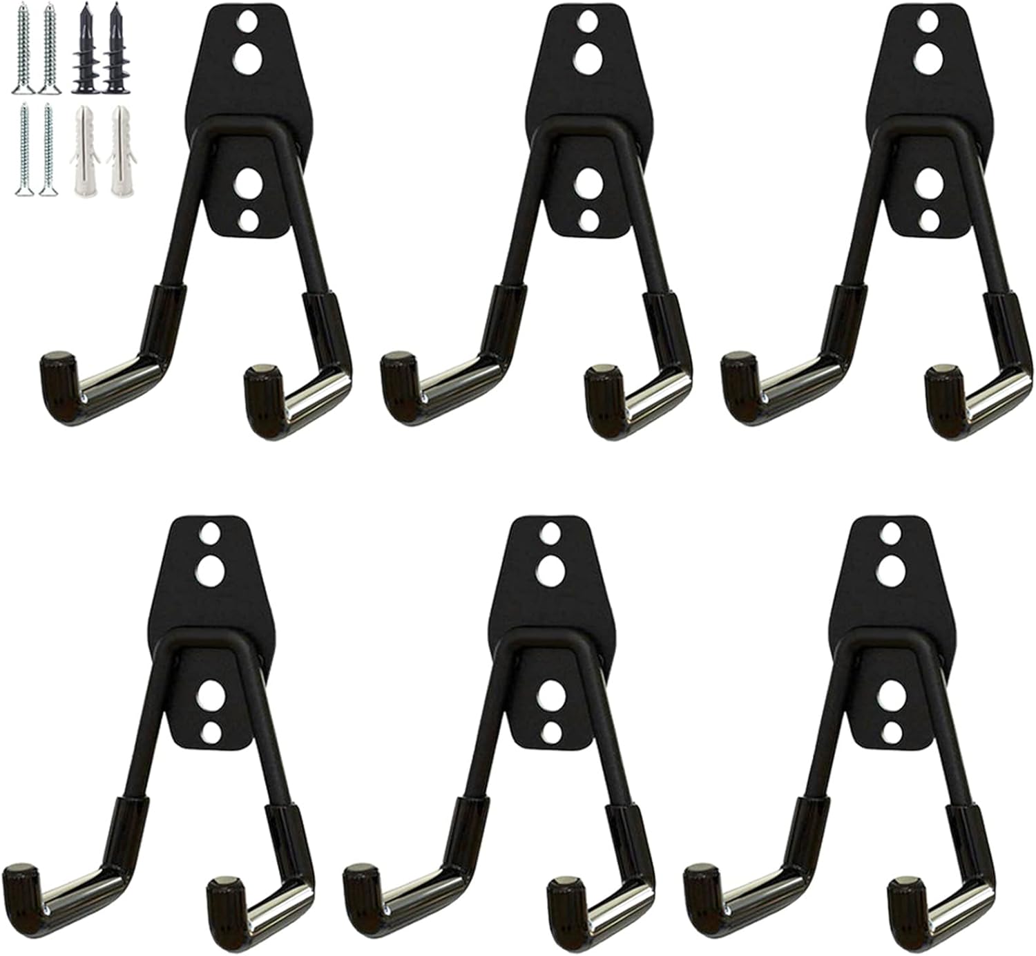 Garage Storage Utility Hooks,Garage Garden Tool Organizer,Steel Wall Mount Hooks, Garden Small U Hooks (6 Pack-Black)